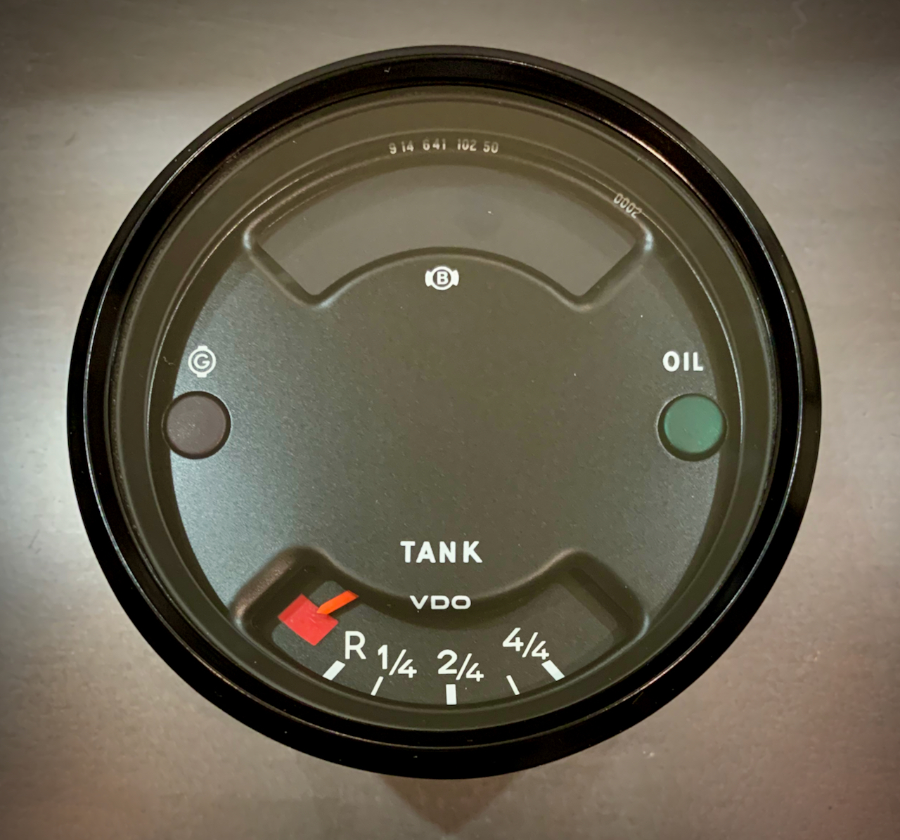 I have a gauge that I got from Slits to use in my street car I still have not installed it, and its been a few years now my 1st question: -what can you tell me about this gauge? is it 1972 or 1973? silver dot so maybe a really early 73 appearance gauge? I'm not selling this one, just curious and for my own use 2nd questions: -how do I determine if my current senders, or which senders will be needed. Currently I have a -6 fuel/oil temp gauge in the dash its wired to the correct sender in the taco plate it was 20 years ago... so I'll need to pull the sender to find out which model number it is. any way I can tell from the numbers/model of gauge which sender is correct to use with this one ? the fuel side of this "new to me gauge." Its a 914/4 gauge, with a stock 914 fuel tank and sender. I'm betting it is within the correct 90 -0 ohm range since it likely use the stock sender in the fuel tank. How can I verify that, or what do the experts and charts indicate as confirmation? thank you in advance everyone! brant Attached thumbnail(s) |