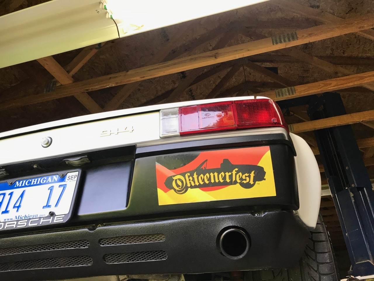Up in the air this morning changing the oil, found both rear shocks seeping from the top seal. Koni reds, I’m going with seepage, opposed to leakage. Still seem to be dampenIng. Also I’m still going with the bumper sticker, unofficially. |