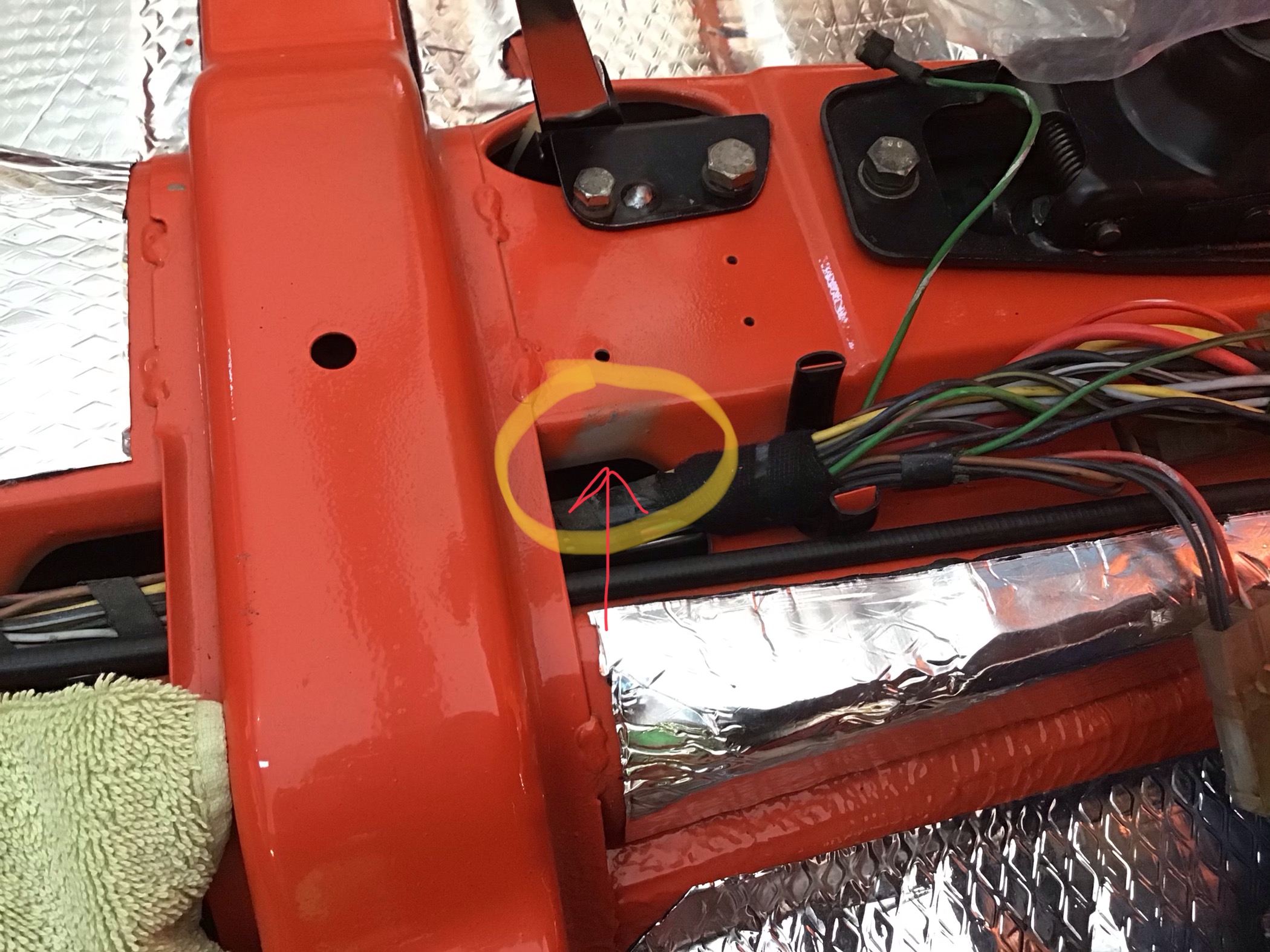 I don't think that is the proper routing for the wire. Check by the cross support for an opening. Yes, I believe you are right, I should have had that wire exit the loom closer to the cross bar. After I cleaned the loom, I retapped this area and probably should have not taped over the green and white one. I think I’ll undo some of the tape and reroute it through the side of the tunnel. Thank you, John |