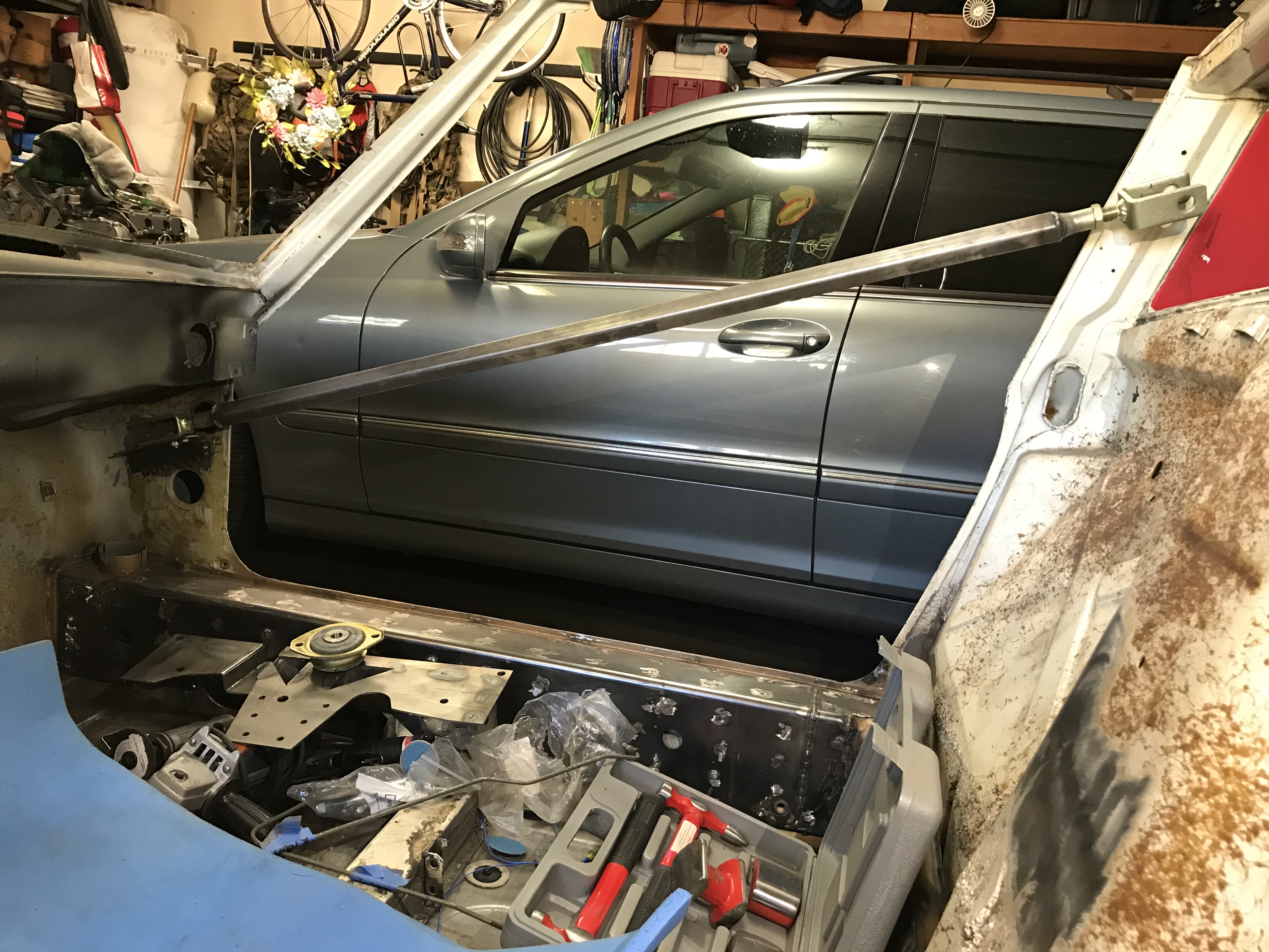 What’s the deal with us 914 guys?!?! I had the same view in my garage, 914, e class wagon and........black Cannondale bike. (IMG:style_emoticons/default/beerchug.gif) Is that a "homemade" inner longitudinal? what gauge |