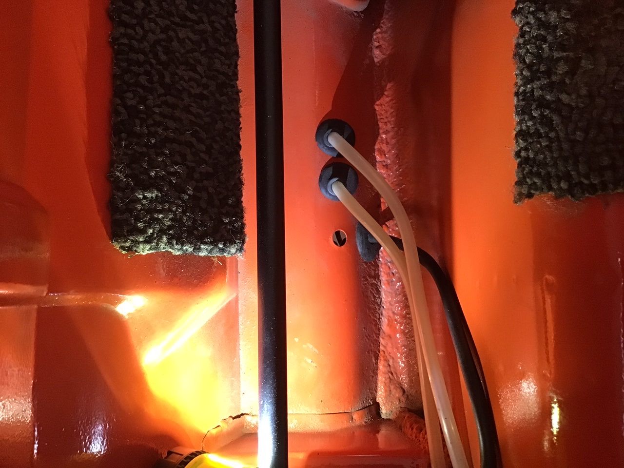 Any help with this would be appreciated. You can see the two blue carmagic wires, one of those will connect to the red wire from the washer pump. Ian am looking for direction on where the other should go. I am trying to get all these little loose ends tied up before dropping the fuel tank in, as it is much harder to work in there with it installed. I am using the braided fuel line under the tank as it is much more flexible. I will probably add enough extra to lift the tank out without having to remove the lines. Also wondering what this hole next to the brake fluid lines is for. I don’t want to install the tank more than once if possible. |