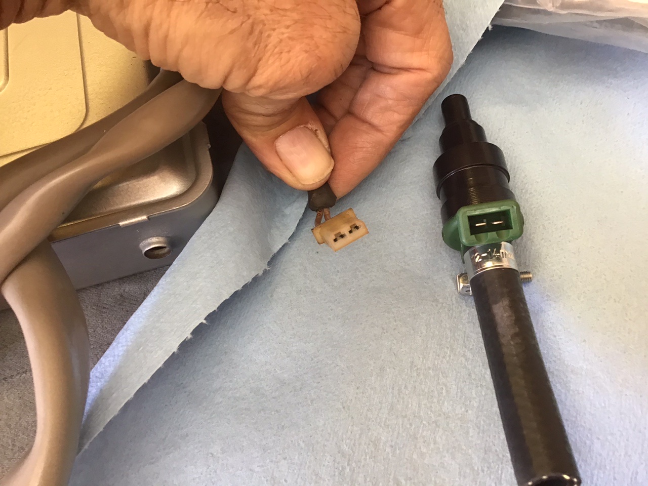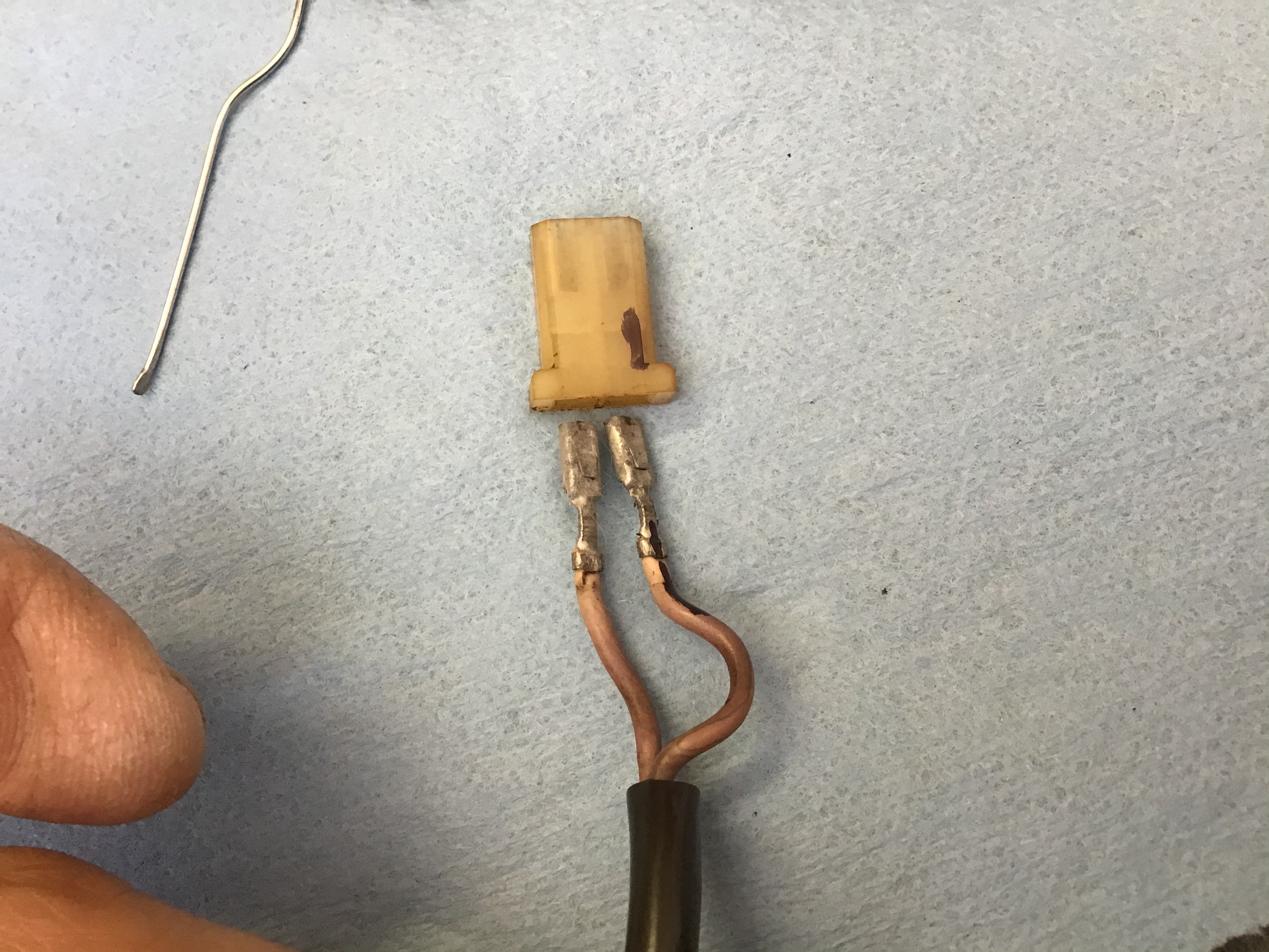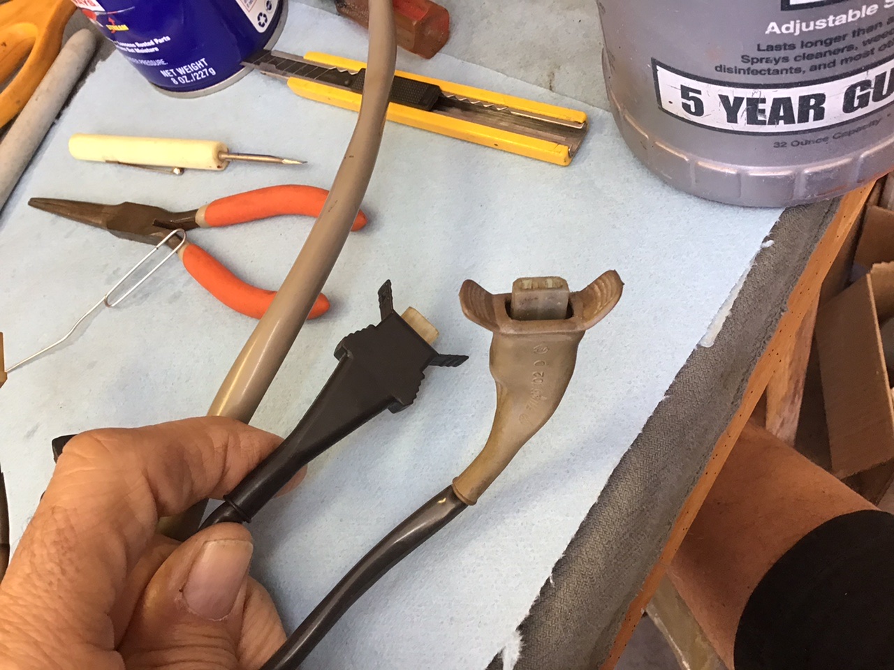 Notice the handy dandy release tool I made with a large paper clip, just a few taps with a hammer on the edge to flatten out. Im not sure if the wire orientation matters, but I marked one of the wires after taking it out so it would return to the same side. Getting the boots on were a bit of a pain, I used a bit of WD 40 to lube the boot. After you get the wires through make sure and push the tab back up on the connector or it will not lock into place. The plastic piece that fits into the injector is notched on two of the corners as if to fit into the injector in a specific manner but the injector has no such matching cut outs. Does anybody know if it matters which way these go in? Attached thumbnail(s) |