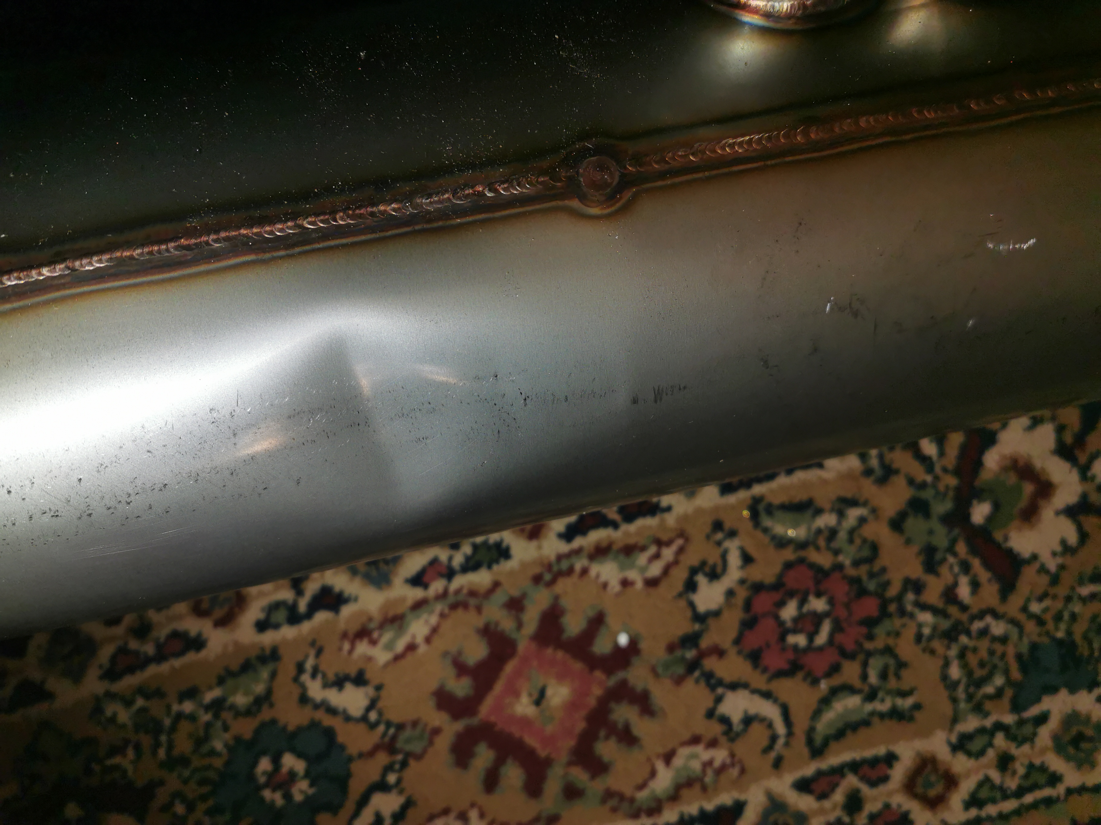 Received my muffler. As other reported, it is a work of art. Unfortunately, mine was manhandled by the gorillas at UPS. There is a 2.5 inch dent in upper left, near the weld line. Ben has offered to let me return it as well as some suggestions to remove the dent. On the one hand I know I am being a bit obsessive as it *probably* will not effect sound or performance and may not even be visible once on the car. Anyway, wondering what others think in terms of repair options, returning, living with it whatever. Ben suggested blocking the inlets and forcing done compressed air via the tailpipe. I did try this to no avail. Have not come up with a great way to seal / fill the tailpipe so not sure if the actual psi. 2.5 us not a standard plumbing size. Given gauge if metal, not sure if air without heat is enough to pop it. Ben also offered to send me a paintless dent repair kit he has. Again, not sure if that will work as they are generally made for thinner gauge body panels and / or the hot glue might not stic to the stainless. I did try with just a heated glue stick but it popped right off. Another option could be to use electric stud welder to tack a stud and pull the dent. However, do not want to turn one problem into a bigger problem. Yes, we could do a UPS claim but, from my experience, UPS always blames the packaging. There was no visible damage to box. Likely it was dropped in an edge like lip of truck. As noted, I could just live with it. Open to other ideas. Thanks. Mike |
