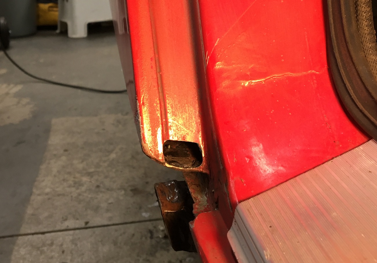 The door latch bracket deep in the rear fender well needed some help. The cover was rusted on the bottom half. After removing it and threating the area with Ospho, time to start rebuilding. ![]() Now with weld through primer and the threaded piece held in place. Good thing i kept on reminding myself to put it there before closing the cover without it, that would have been no fun... ![]() For the cover, I elected to make my own with a template I did, shown here on a spare bracket that didn't end up using. I added a lower opening to spray in some rust protection with a tube later on. Then spray painted with weld through primer ![]() Then held it in place with my telescopic magnet, ready to stretch and weld it afar with my left hand... (IMG:style_emoticons/default/rolleyes.gif) Moving on to the lower fender corner. The one packed with that darn seam sealer that makes things rust... (IMG:style_emoticons/default/headbang.gif) First the lower part: Repair piece, welded, then finished... ![]() Then the front part: same process... Tomorrow, Sunday, day off (IMG:style_emoticons/default/sunglasses.gif) Next weekend, more cut and repair... (IMG:style_emoticons/default/sawzall-smiley.gif) (IMG:style_emoticons/default/smash.gif) (IMG:style_emoticons/default/welder.gif) |