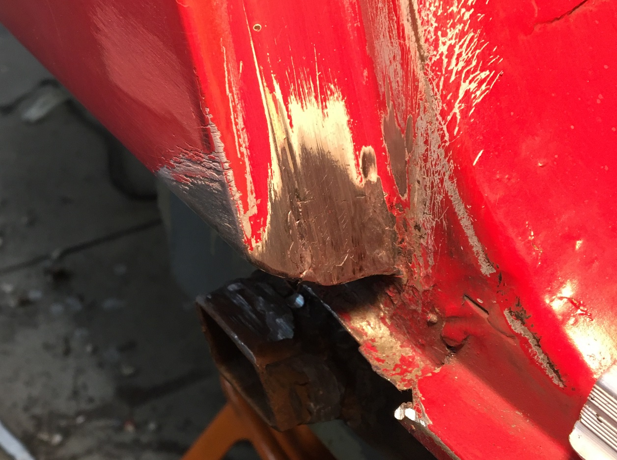 Original post; I got side tracked on my Microsquirt build as I have decided, after 11 years of ownership, to finally get my car painted to get her ready for her upcoming 50th birthday. (IMG:style_emoticons/default/smile.gif) Knowing these endeavors can take a lot more time than initially planned, I hope to make it in time... (IMG:style_emoticons/default/wacko.gif) Well that date has long past now... (IMG:style_emoticons/default/rolleyes.gif) Originally bahia red 73 1.7. The goal is a narrow body Front: 914-4 A arms with Rear: Drilled hubs, But before I get the pleasure of installing all of these beautiful fresh goodies, I need to tackle the not so fun stuff... (IMG:style_emoticons/default/headbang.gif) I have already started fixing some of the rust issues and will share that progress in the near future but right now, I wanted to post some of the issues i have on the passenger side front fender. (IMG:style_emoticons/default/sad.gif) I have searched and read many of the builds here but I would like some inputs from the people who have gone through this mess. I am trying to understand the construction of the rear part of the fender, more precisely the area joining the front cowling. Below is a sketch of how I think it is made but i would like someone to confirm... Having removed the seam sealer in the upper rear area, I have discovered "this" (IMG:style_emoticons/default/dry.gif) which is not really unusual, but clearly a pain to fix. I am not sure though what I am looking at. If my sketch is correct, I guess the inner rusted layer is from the fender rear bulkhead that actually becomes an inner layer on the rear upper point of the fender by the door and cowling junction. ![]() ![]() I might be able to cut this from the underside preventing me from cutting the outer surface of the fender. But I would like to better understand what is happening at the junction to the body. How many layers are there from the fender, one or two? Is the metal peeling off at the joint to the body the metal from the bulkhead/inner layer, or is it the outer fender layer? As a reference, this if the situation of the channel, surface rust, but how bad? Is there a way to better know without destroying? Maybe poke with a screwdriver? (IMG:style_emoticons/default/confused24.gif) ![]() Comments appreciated (IMG:style_emoticons/default/smile.gif) |