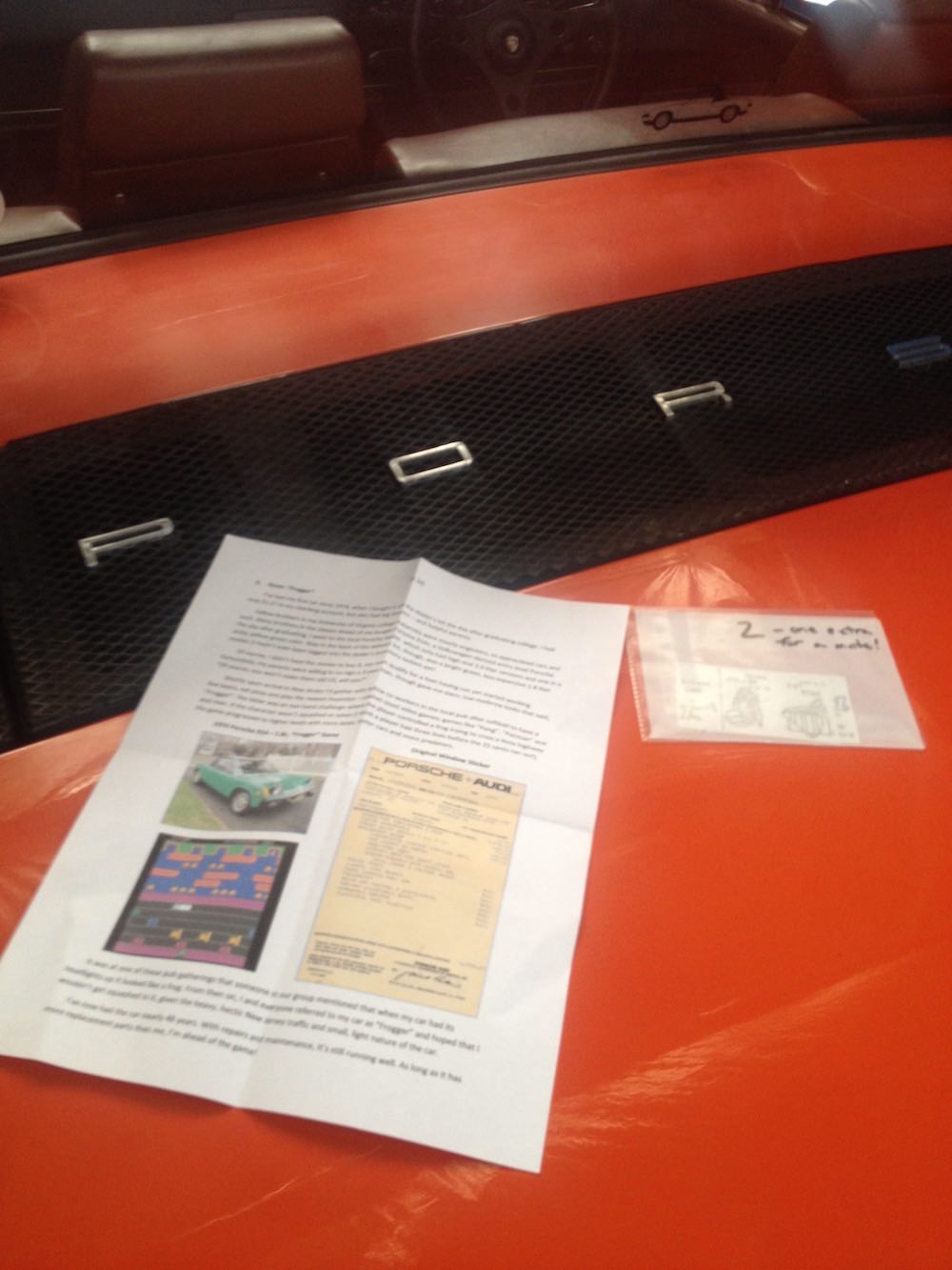 surprise present showed up in my letter box thanks to mr. starbear. luckily it did not mirror image itself going across the equator. (IMG:style_emoticons/default/biggrin.gif) looks fantastic. very appreciated and thank you. (IMG:style_emoticons/default/beerchug.gif) liked the attached pacman story. wasted so many 20 cent pieces playing that down here i probably could have bought a 914. Great! So glad they made it all that way. Happy motoring! I have mine, thank you very much. When the car comes out of its winter storage bag, it will be in the engine bay. , |