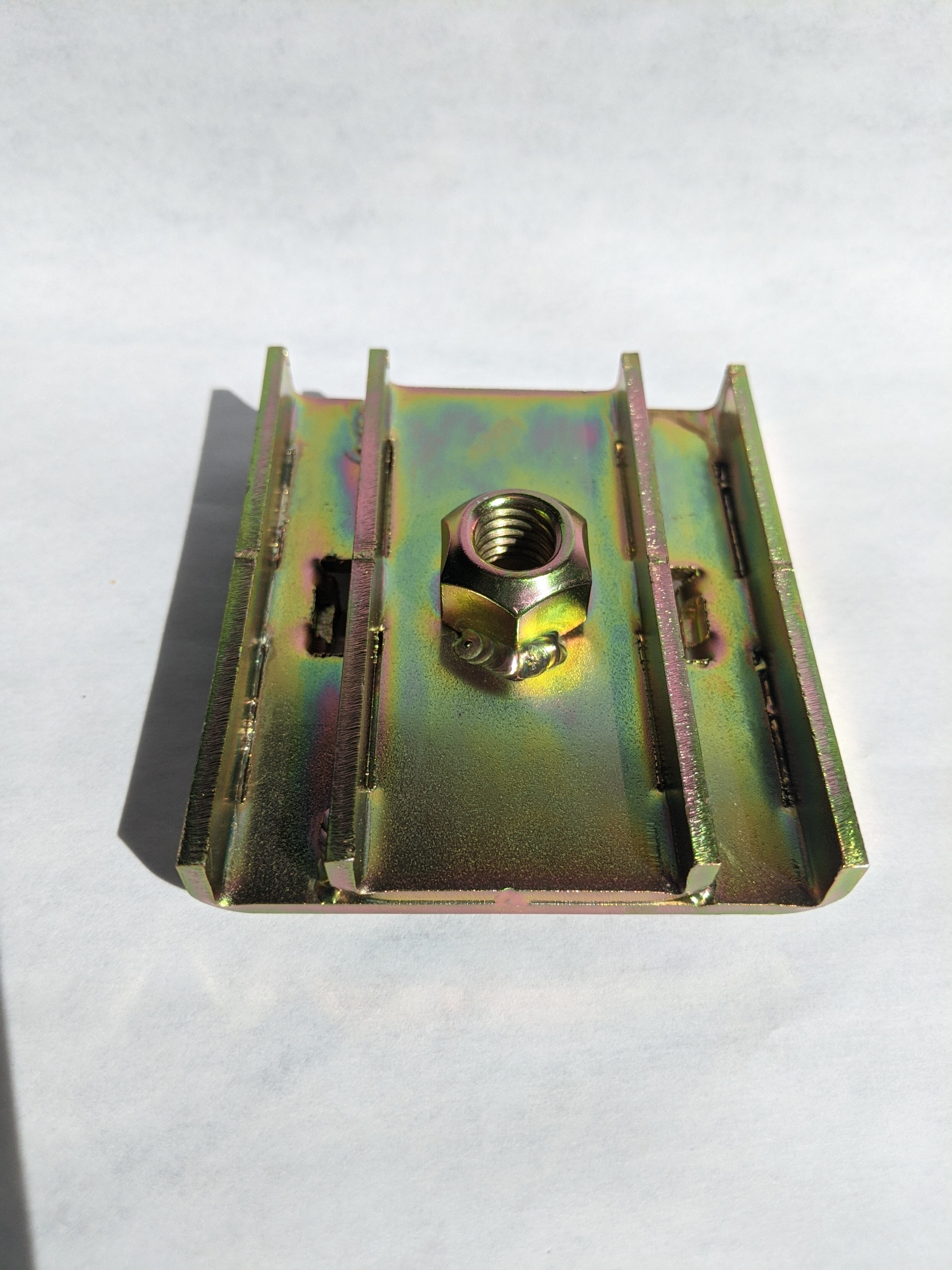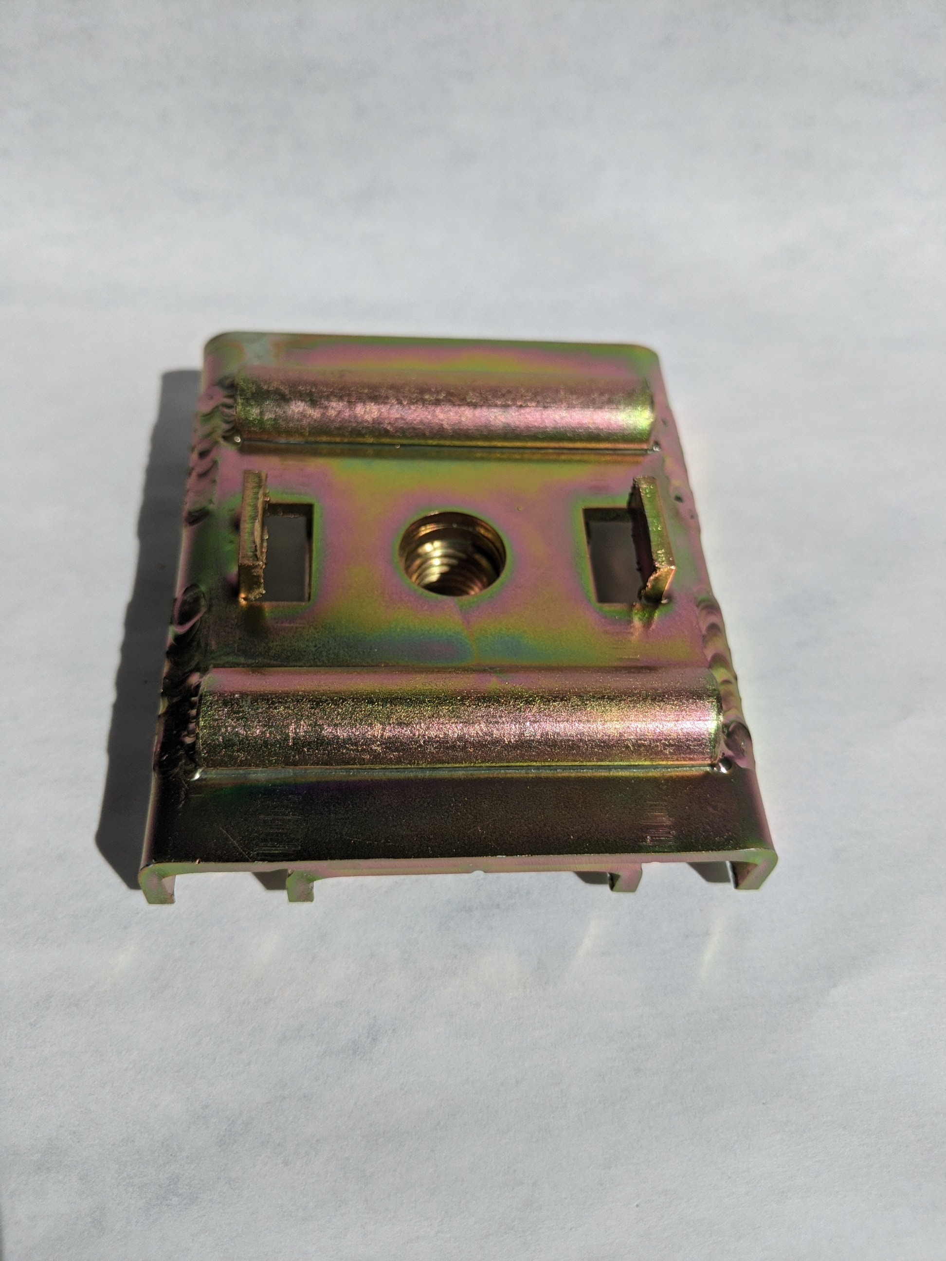 I recently purchased the OEM mount from Mad Dog, you couldn't ask for a better fit. It nestled into the recess and allowed basically no room for error. I socked it in with a couple self tapping screws and went ahead with the plug and fillet welds. I removed the paint from the mounting surfaces with paint stripper and cleaned it up with a sanding disc prior to welding From what I understand the factory placed additional reinforcement in this area. Running the welds for this mount I sensed it the way my MIG was acting. I bet you could pick the entire car up from this mount. Very well done Mad Dog |