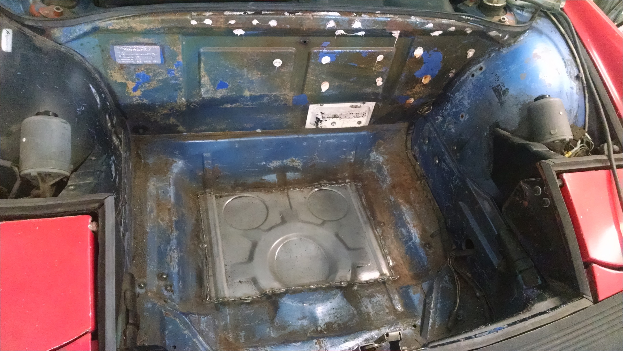 Got around to welding in the trunk floor to patch up the old dealer installed AC system.