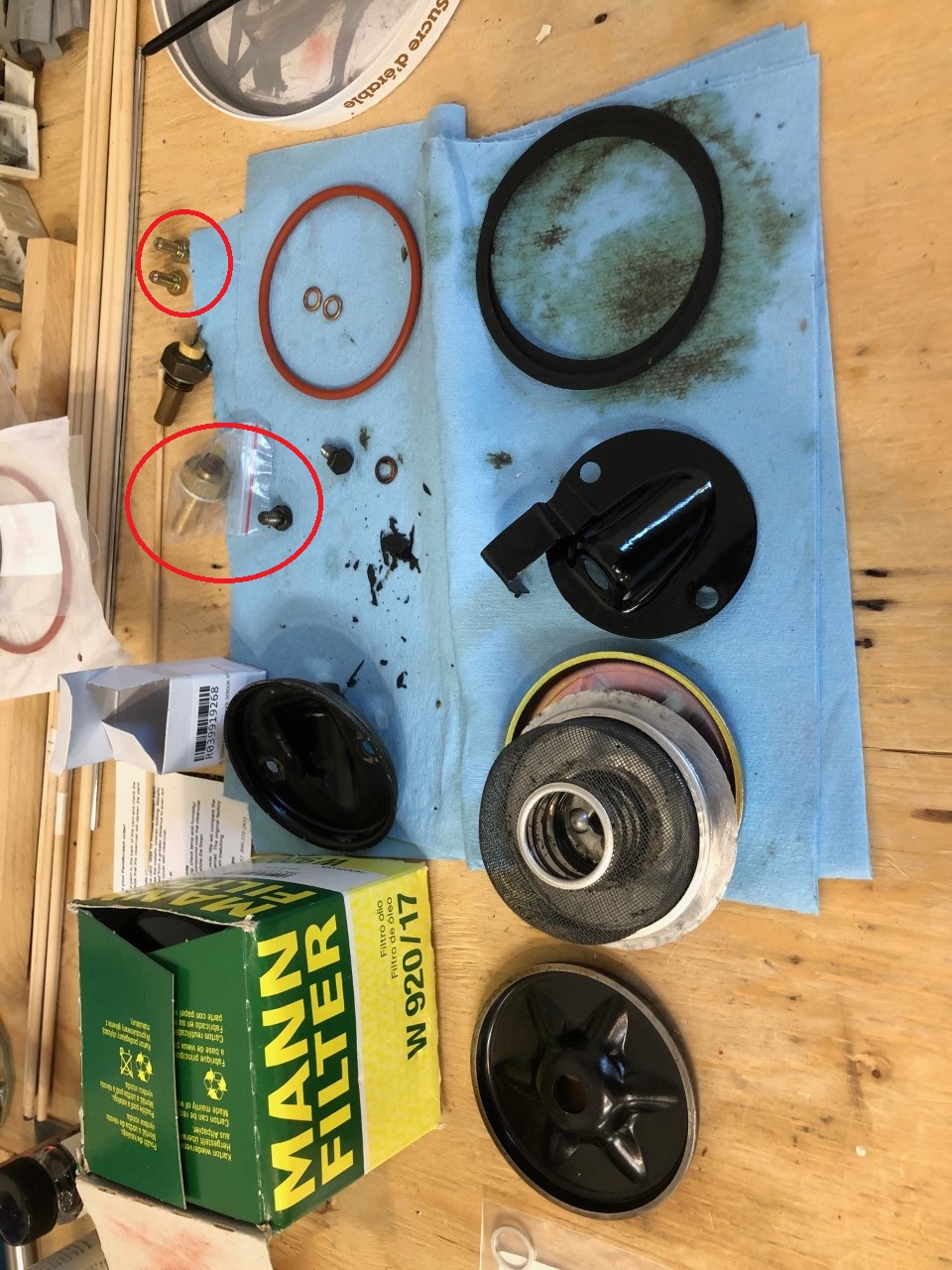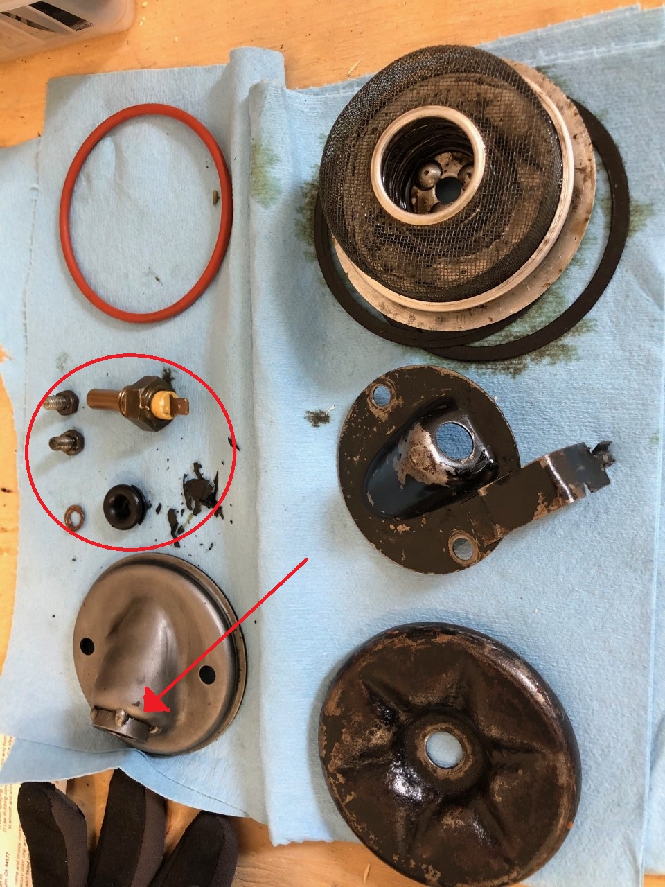 I have recently replaced gaskets, oil temp sensor and the "taco" plate on my '73 1.7. My central console temp gage was not working. Now, not only the temp gage still not working, but I am facing a major oil leak which appears to be coming from the sensor wire rubber boot on the taco plate. I took care to properly install the components ("red" oring, paper gasket and "crush washer" on the 2 retaining hex bolts) in addition to tightening them well as spec. Before I attempt to retry this experience (I will need to drop engine oil again!), wondering what could be the problem: 1- for the temp gage still not working... 2- for the bad leak I noticed... I heard that the sensor must fit the gage... I don't know if I have the correct part number. Also, wondering if the sensor threaded coupling welded on the taco plate is supposed to be oil proof? There are only a few welds and so I assume that the oil can seep between the threaded part and the plate and escape through the boot.... My theory. Thank you very much for your thought and comments! Sebastien |