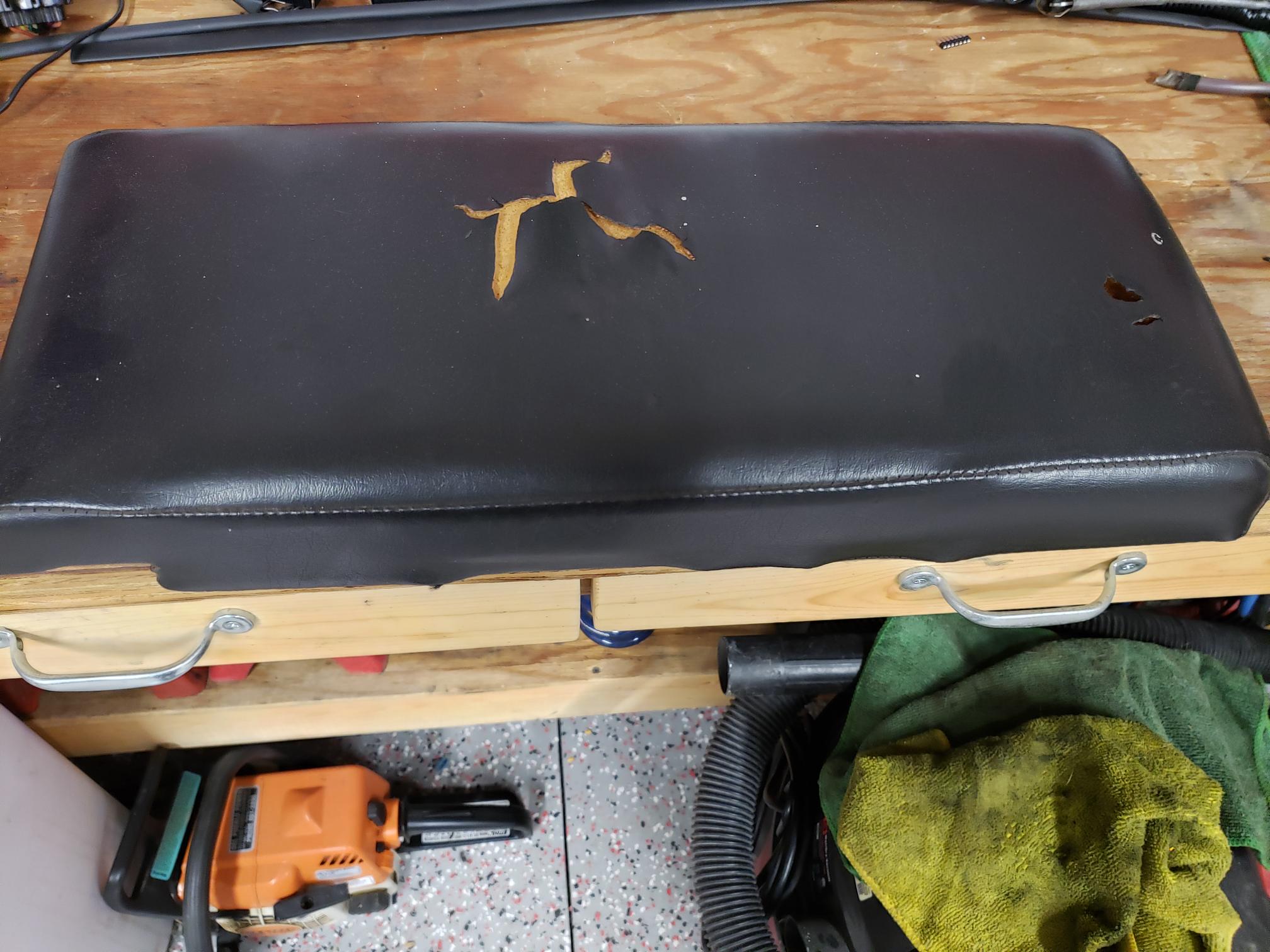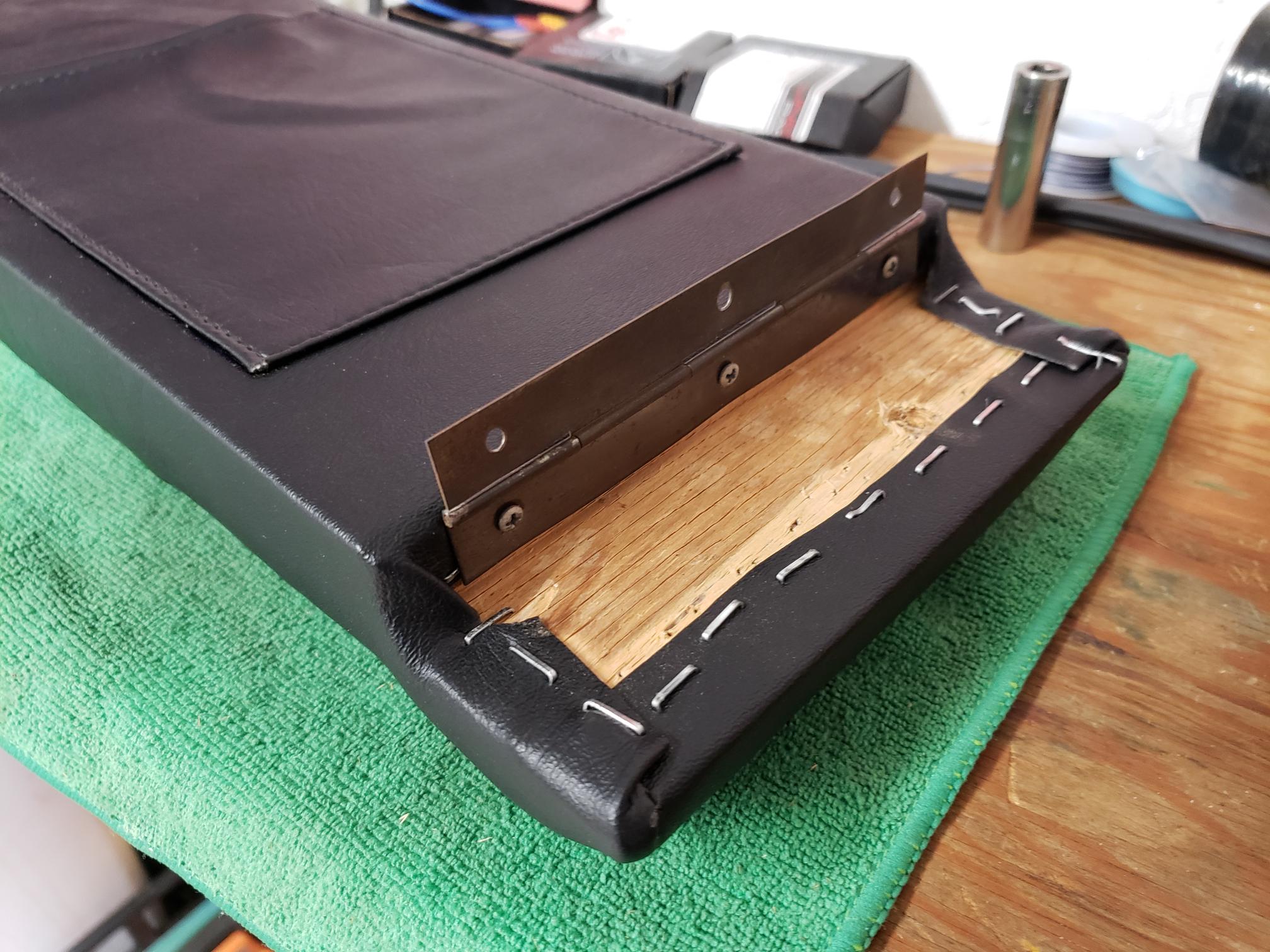 Here are a few updates of some work I've been doing on the teener. The center armrest has bugged me since I've owned the car, with it's torn and funky looking vinyl, especially now because the interior is looking pretty decent. I found this upholstery kit on eBay for like $30. It took forever to get, so much so that I pretty much gave up on getting it. Then one day, mystery package at the door!