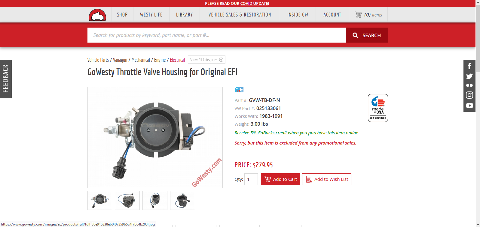I purchased the GoWesty throttle body a few weeks... Apr 2 2021, 05:04 PM