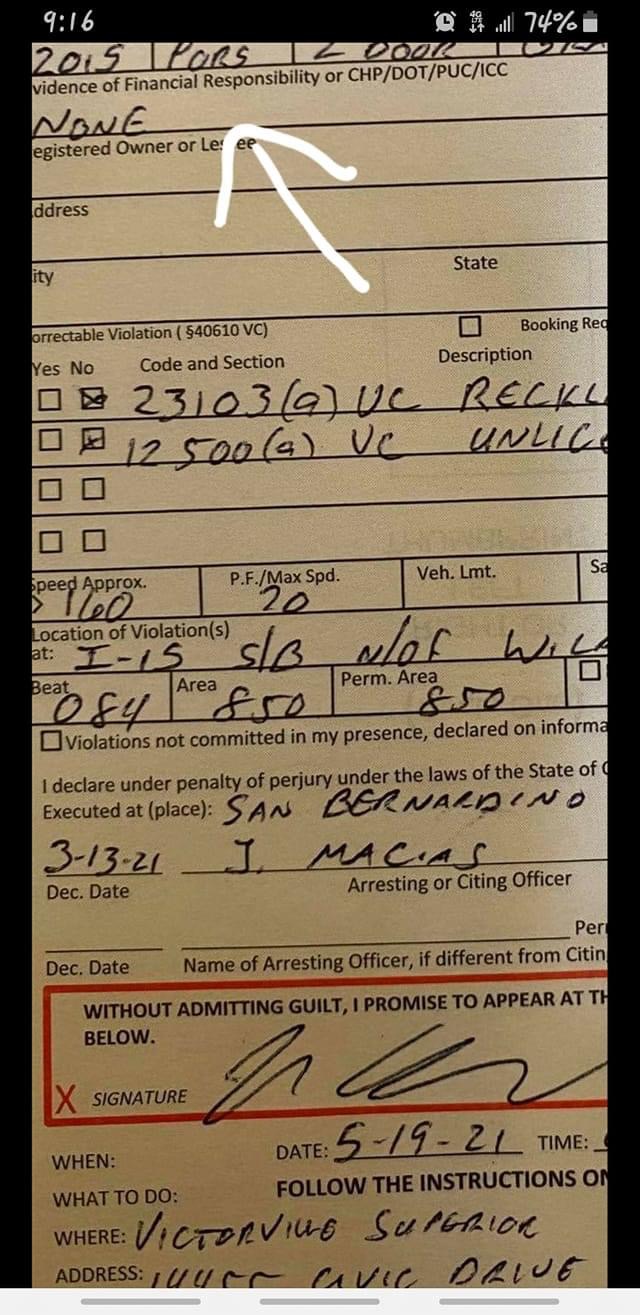 Chris914n6 No plates. What insurance....