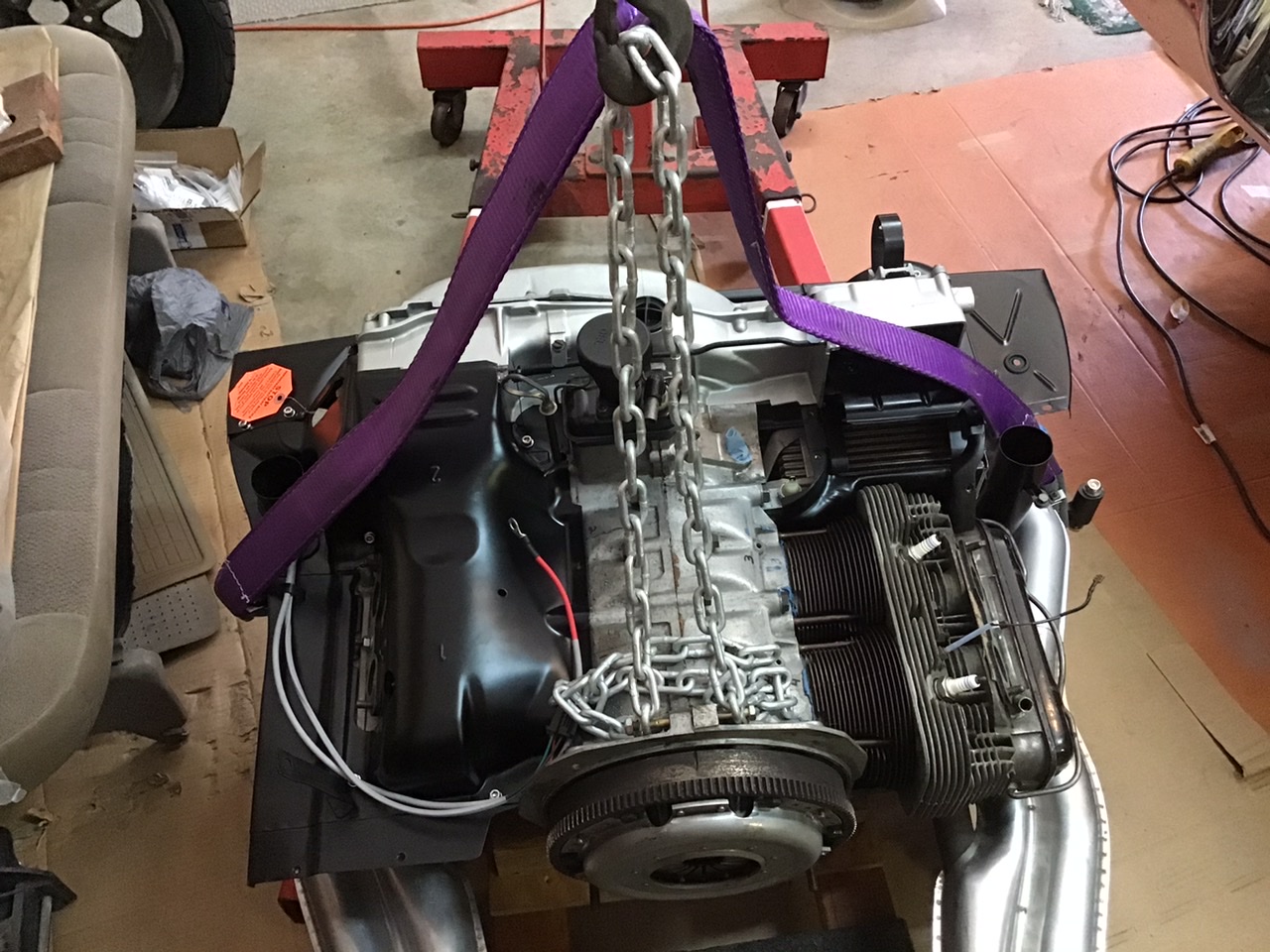 Time to get the engine off the stand so I can marry the trans to it and start putting on all the bits and pieces.