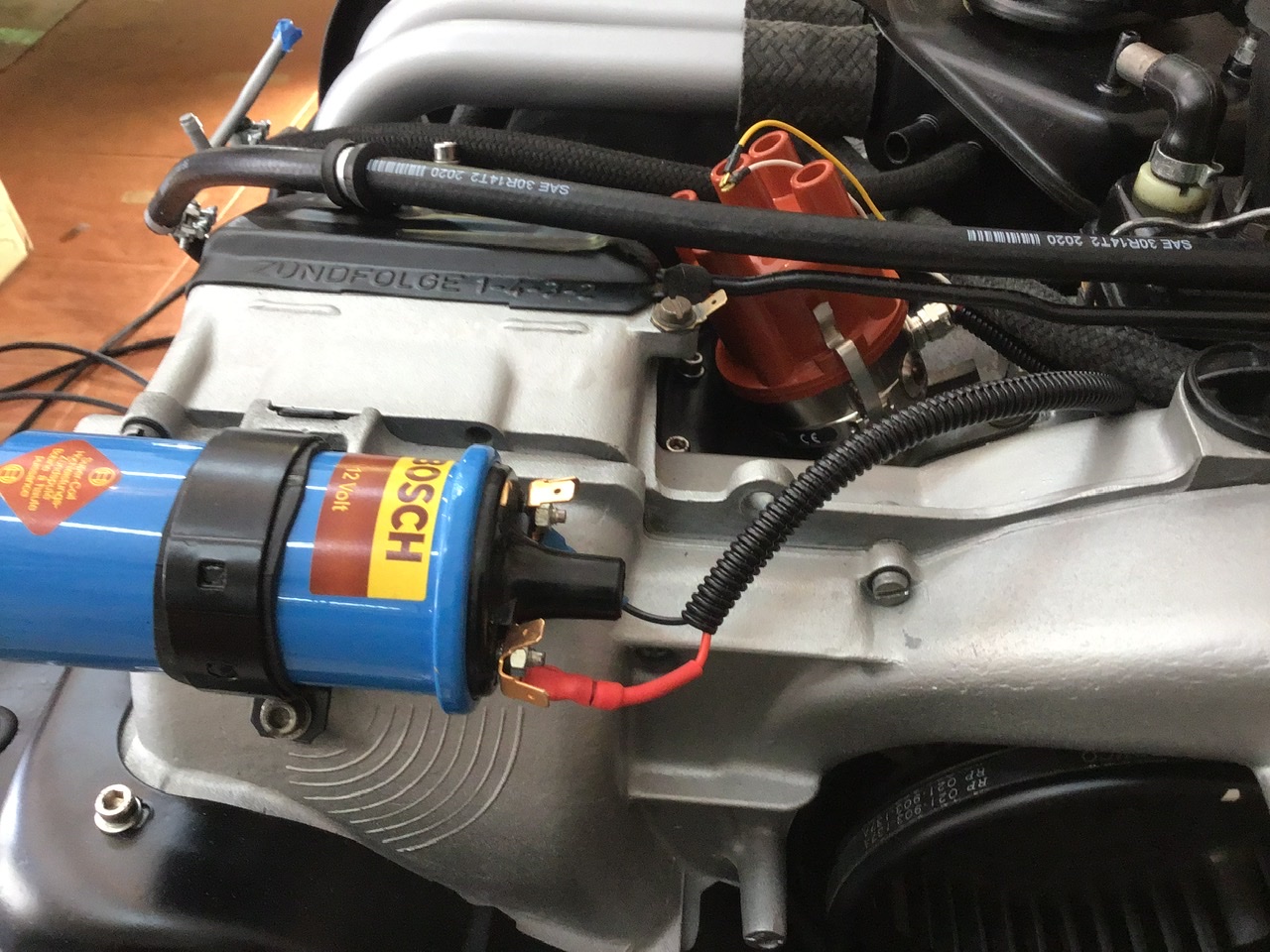 The trans meets its new mate. Intake runners, fuel injectors, fuel lines Got the 123 dizzy installed and wired to the coil Unfortunately, I may have to relocate the coil back to the tin location due to my coil wire being too short. I prefer this location though so I might just make up a longer wire. Now trying to get my vacuum lines connected. I purchased the kit from AA but having a difficult time figuring this out. I have referred to many different diagrams and they all seem to differ a bit and then the ports on my air cleaner are a bit different. Like this big port on the back of the air cleaner, it has an ID of approx 3/4” and I believe this is where one of the lines from the charcoal canister connects, but I don’t have any hose in my kit that fits this. Is there a reducer for this stub? |