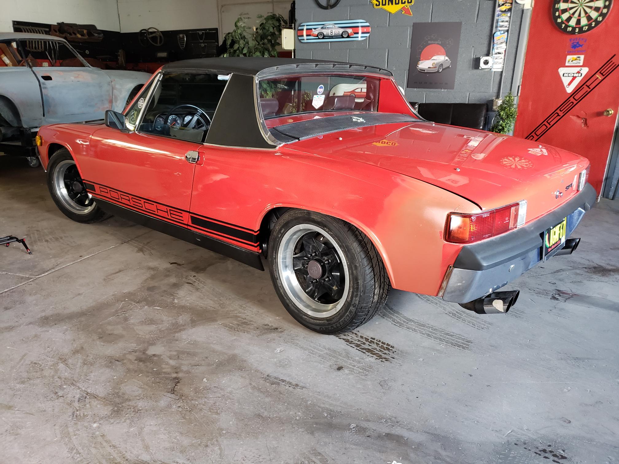 A little back story: my younger brother and I are car fanatics, especially those of the German variety. He owns multiple BMWs, an early 911 with RS bodywork, and a manual 928, and I own an early Boxster, a 944 Turbo, and now the 914. Last summer, my brother went to check out an E36 parts car for his M3 in rural New Mexico. Sitting under some trees was this solid but rather forlorn looking 914: (IMG:http://www.914world.com/bbs2/uploads_offsite/i1322.photobucket.com-20880-1490063976.1.jpg) (IMG:http://www.914world.com/bbs2/uploads_offsite/i1322.photobucket.com-20880-1490063977.2.jpg) $1800 later, we towed home a mouse infested ran-when-parked 75 914. The 1.8 FI engine had been swapped out for a 1.7 with 1.8 heads and a single Weber carb, and the impact bumpers had been backdated to chrome bumpers. Mars Red with Mahle gas burners! (IMG:http://www.914world.com/bbs2/uploads_offsite/i1322.photobucket.com-20880-1490063977.3.jpg) It had been parked because the previous owner thought it had developed a serious front main seal leak. We got it running with a minimum of effort and saw the significant oil leak. We impulsively dropped the motor and resealed the oil pump, suspecting that might solve the problem. (IMG:http://www.914world.com/bbs2/uploads_offsite/i1322.photobucket.com-20880-1490063978.4.jpg) Motor back in, along with a dual Weber setup we came across, it seemed like the leak was fixed. But it was running so badly, we couldn't really drive it. Since my brother was working part time at a Ferrari shop that primarily builds vintage motors, we were able to get the carbs rebuilt for cheap by the excellent Ferrari mechanic. (IMG:http://www.914world.com/bbs2/uploads_offsite/i1322.photobucket.com-20880-1490063978.5.jpg) Now with the car running much better, two thing were apparent, 914s are fun (IMG:style_emoticons/default/driving.gif) and we didn't fix the oil leak. (IMG:style_emoticons/default/WTF.gif) About this time, my growing love for this 914 was finally too much to resist. So my brother and I made a trade on his half of the purchase price for a ran-when-parked manual 928 that I had picked up. Still not sure who ended up with the better half of that deal, but we're both happy! With the car mine now, I started in on some of the needed projects. Thanks to 914World, I solved the major oil leak with a bolt in thermostat pulley hole (quite a bit easier than dropping the motor). With that dealt with, I could see a decent driver on the horizon. More soon! Cheers, Jeremy |