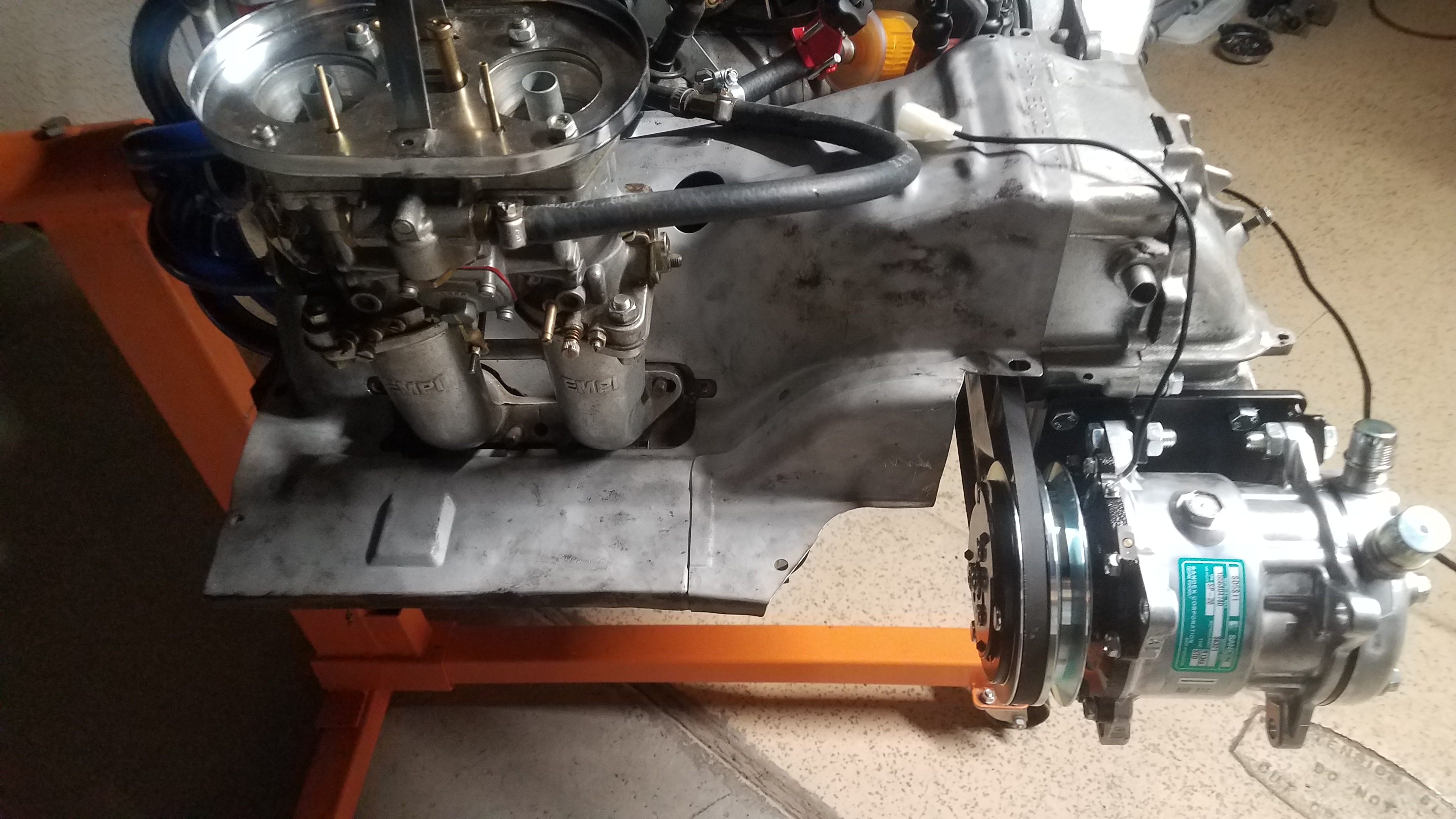 There are places in Arizona where the summers are pretty nice. Those are the places up in the higher elevations of Arizona. I don't live in one of those places. I live in Phoenix. As you may have heard, Phoenix is hot in the summertime. Driving a car without AC in Phoenix in the summer time is pretty miserable. Car dealers don't sell cars without AC in Arizona. Satan keeps a winter home here because the summer are too hot. OTOH, it's a dry heat and I never have to shovel it. The NARP is a 71 914 that started life with a 1.7 liter engine. I had a 1.8 liter engine sitting in the garage for my other 914 project and when the 1.7 got too aggressive in marking it's territory I decided to swap in the 1.8. I also swapped in an transmission I got from Oscar at the same time. The 1.8 came with a boat anchor of a York AC compressor connected with a side mount on the passenger side of the engine. I removed that almost as soon as I got it home. I picked up the 1.8 a couple years ago from Patrick Motorsports for a GREAT deal and James said it came out of a running car so I thought it was good to go... I had never looked it over as well as I could have. I've known James for several years and trusted him and I still do. I never asked or looked at the engine to see about oil leaks. It really could have had a hole in the case and it still would have been a good deal so I don't want this to sound like a complaint about James or PMS because it is not. I cleaned a LOT of crud off the 1.8, replaced the front crank seal, swapped the engine tins from the 1.7, and installed it and James was correct, it runs great. It was still dripping some oil and I wanted to add an AC system so it is back out of the car less than 500 miles since it first went in. I've tracked the oil leaks to a couple push rod tubes so all the push rod tubes are getting new seals. Another reason I dropped the engine was to replace the shift input shaft seal on the transmission. It was the only seal I didn't replace last time I had it out of the car and of course, it just had to leak. (IMG:style_emoticons/default/headbang.gif) (IMG:style_emoticons/default/headbang.gif) (IMG:style_emoticons/default/headbang.gif) It didn't help that I put Swepco oil in the trans before I installed it the first time. The good(Evil) Dr. set me straight so it is now running good old 90 weight Dino oil. The transmission now has all new seals and is ready to go back in the car. The engine will have the new push rod tube seals and oil cooler seals to go with the new front crank seal I put in before the first install. So there is the background on the engine and trans. Now it's time for the AC system. This is a total experiment based on other AC threads here and on the bird and based on systems and guess-timats from other cars. I made some of my guess-timats based on parts and sizes from my 1990 944 S2 Cab. The cabin of the 94 is a bit smaller than the 944 cab so parts that can cool the 944 should be about the right size to cool the cabin of the 914. As I said, the 1.8 liter engine came to me with an OLD York compressor. I did not want to use that massive HP hog. There was a decent pulley mounted behind the fan but it is also a heavy piece of steel. I bought an original dealer installed style AC system a few years ago from some one either here or on the bird board(I don't remember which and it doesn't really matter at this point). I bought it mainly for the under-dash evaporator and the controls. The NARP never had AC so it is not hacked up. It has 99 problems but ragged holes in the body and front trunk for AC aren't any of them. The engine tin on the passenger side of the 1.8 is hacked up and bent up pretty bad. I should have taken pictures before I started cleaning it up. I am going to finish cleaning it up and paint it. I don't want to hack up the good tin that was on the 1.7. I'll save that and hack it up for my next project. (IMG:style_emoticons/default/sawzall-smiley.gif) With the advances in modern compressors, condensers, and fans I decided to try an installation with the condenser mounted to the underside of a GT style engine lid. In addition to the original style under dash evaporator, I am using a Sanden sd5h11 6333 compressor. It is the modern equivalent of the SD507 and is designed to use R-134a. I will be mounting it to the passenger side of the engine with amount plate I got from Gilmore Enterprises out of Las Vegas. Their website (gilmore-enterprises.net) doesn't list parts for the 914 or any individual parts but Ed, the owner is super easy to deal with. I called him up, told him what I was looking for, and it was on the truck heading out to me later that day. I picked a universal fit parallel flow 11" X 21" condenser and 2 high flow, low profile 10" fans and a drier with a trinary switch. |