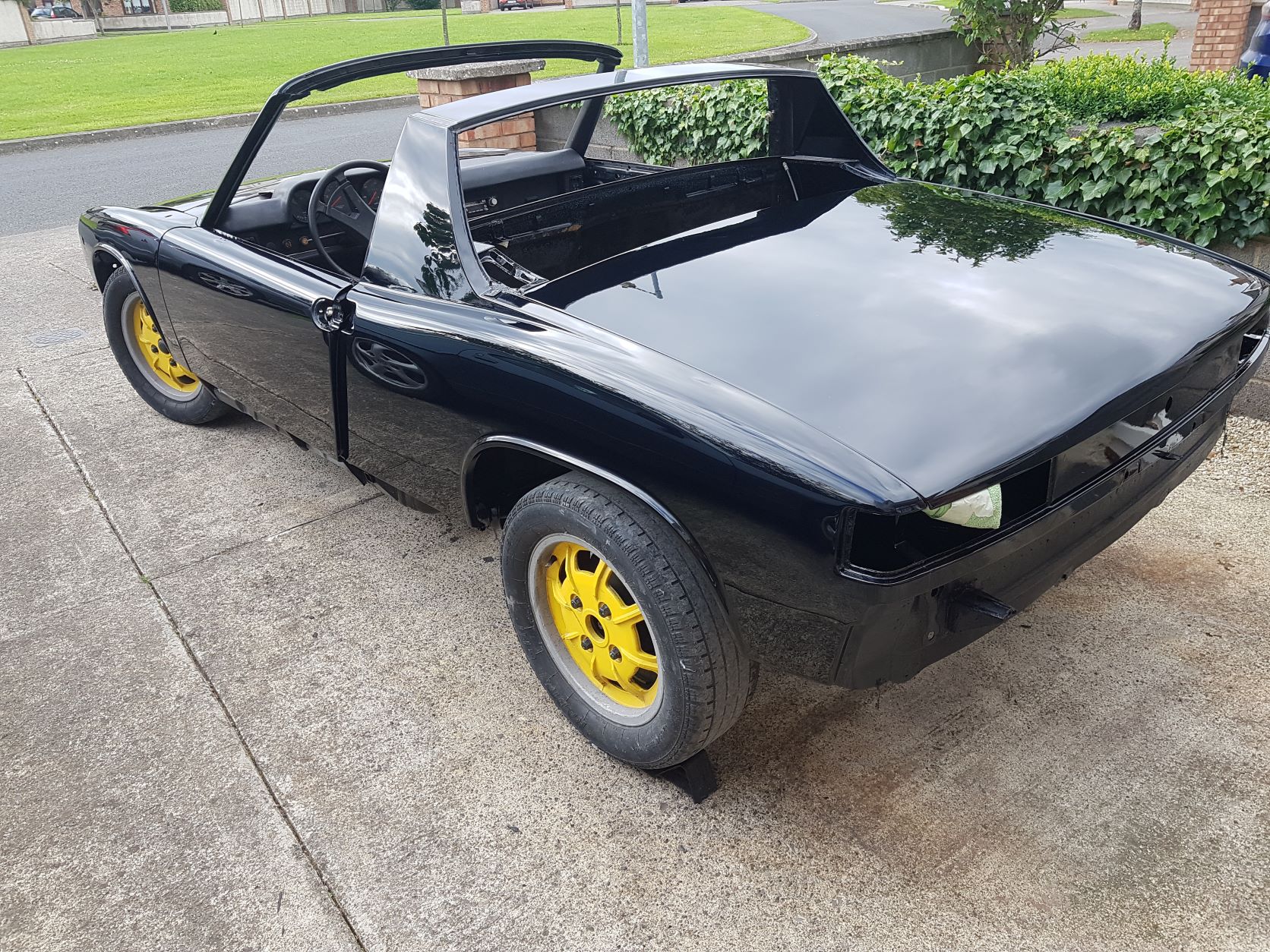 About 8 months ago I decided it was time to get a 914, friend had one when i was in high school (80's Ontario) and it was so different to anything else I had driven i have never forgotten it. I'm in Ireland many years now and 914's where never sold here, looked at few in UK but prices where high for not much car, it was a project I was after. Joined 914 world and put a wanted add up, was considering few cars regular members had for sale, but then someone who had just joined made very low key contact, just saying they had a 74 2lt LE they wanted to sell. I thought it it was likely a scam but decided to go along, how wrong I was. First I got few photos, still skeptical, but slowly as i asked for more detail it was all forthcoming, i was buying sight unseen, but after a few calls with the seller (Tom) all seem good and we did the deal, had the car collected just before Christmas. covid and brexit lead to shipping delays, so the car just arrived this weekend to its new Kildare home. Anyway Tom is a gent and an Ohio petrol head who just needed to thin out projects, he had had the car since the 90's but had been off the road a few years after a stalled restoration. So the car is an Ohio car all its life, with.... a very solid body. I started stripping today and outside, the rear jack points and thresholds its very very good so far. Hell hole is solid from the top and had good photos of underside from Tom, so hopeful. Engine needs a full rebuild (its in boxes) as does suspension, fuel, brakes and and a full respray. The interior is original and in great shape. Plan is to have a driver which is as original as possible, like what Ian is doing on youtube, but with a bit less budget. I will undertake all but the respray myself, I had a garage to work in lined up but unexpectedly lost it, oh well real men work in the drive anyway. I had to laugh when I took the seats out today, I had restored the ones in my 928 last year and it nearly killed me lugging them about, I don't think both the seats and all the carpet in the 914 equaled one 928 seat. It going to be fun having the two ends of the spectrum to drive. I will put updates on the thread as I go, but for now here is the original window sticker and a couple of pics. |