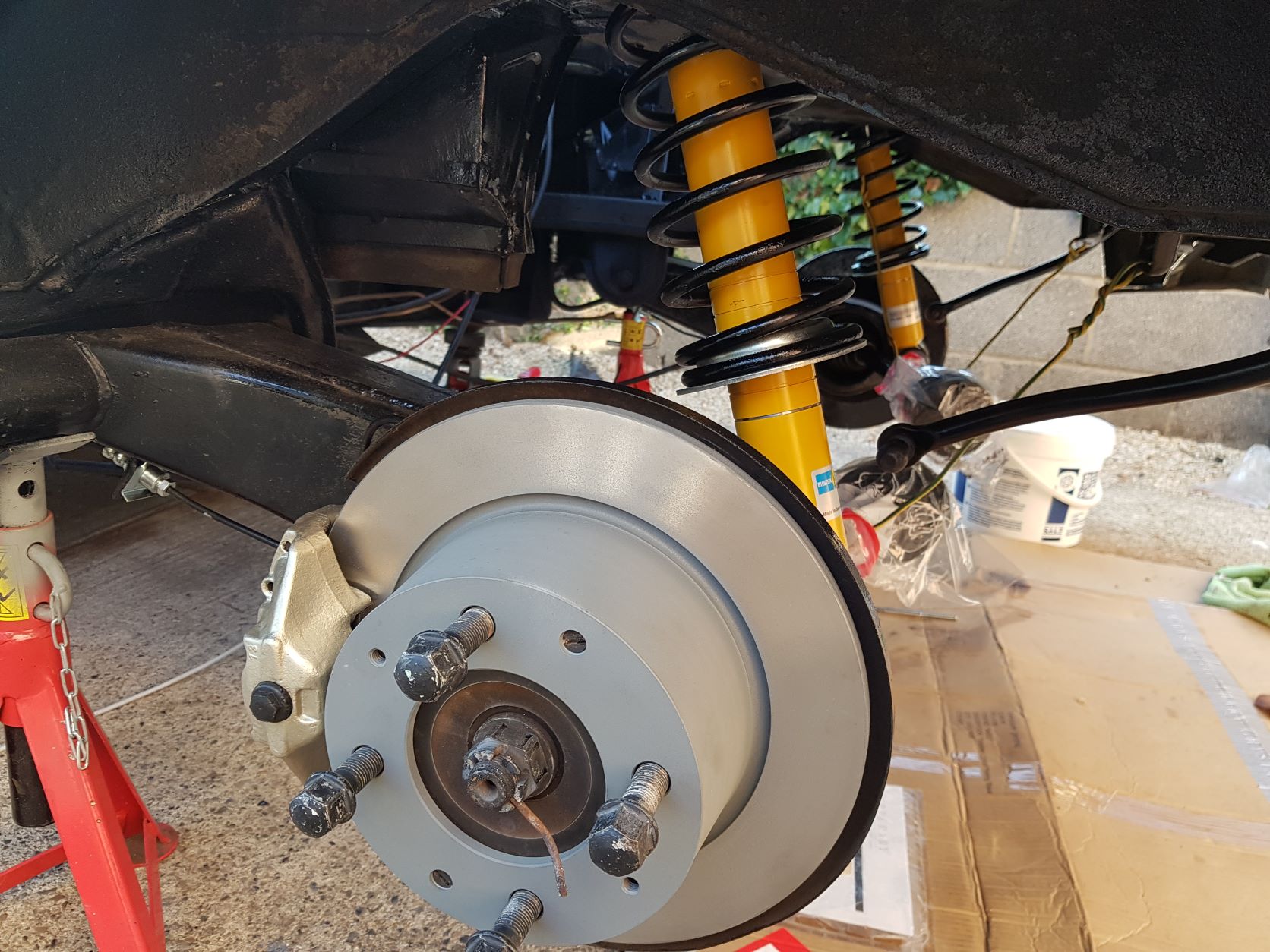 Having a great spell of weather here, so parked the engine build to carry on with work on the drive while it was in my favor. Got the rear suspension and brakes almost all done, just found I was missing the drop link bushings. Cleaned, re greased and repainted the drive shafts, will move up front next.