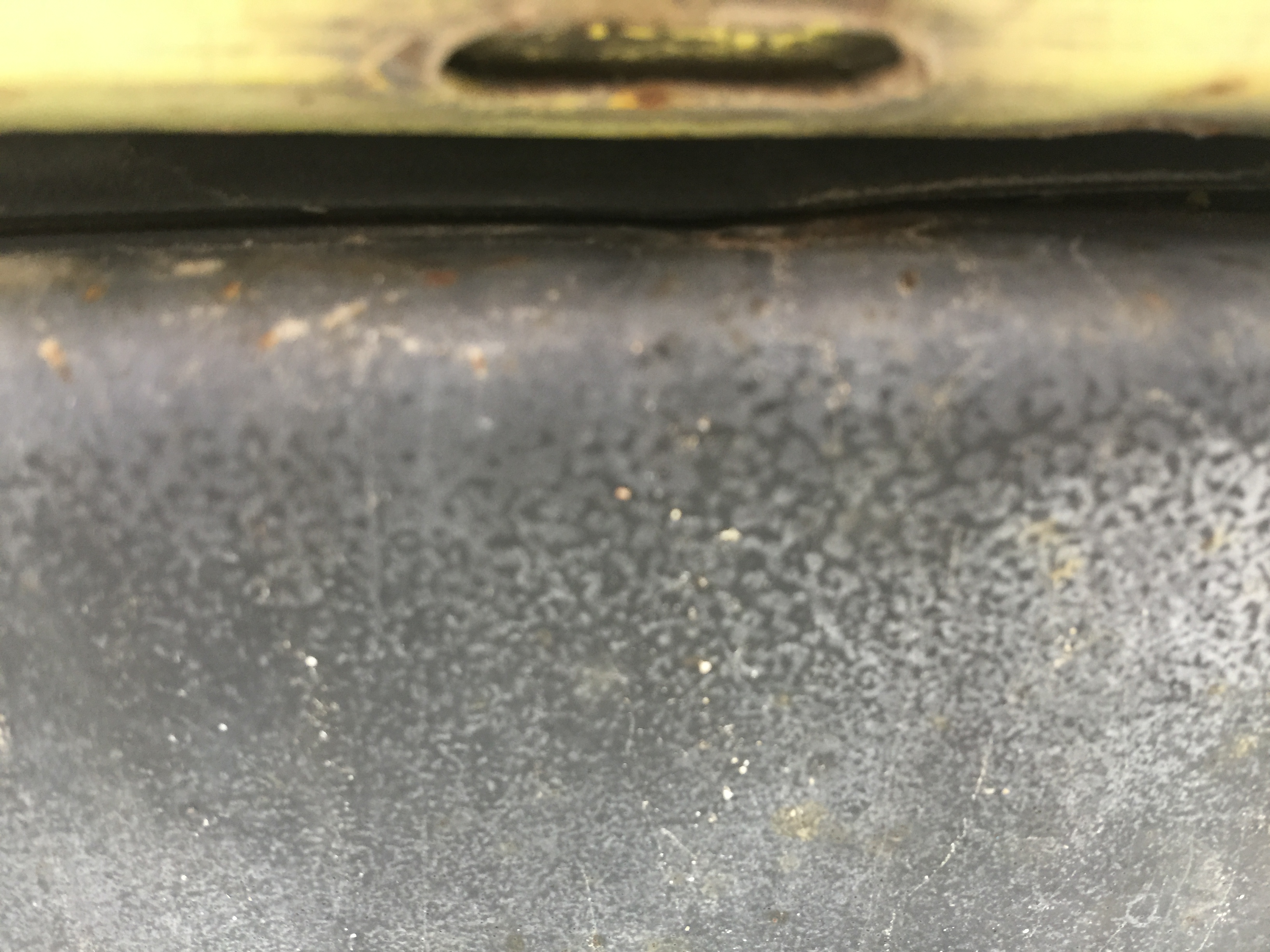 I've seen this car in person. It's at Gaswerks in NJ. Shot a little video of it, too as part of an episode I did on my friend's 911... https://www.youtube.com/watch?v=YT-Zan7KB6c&t=114s The car was up on a lift so I didn't see the mistmatched gauges. Hmm... interesting vid. except the rockers don't have "the original textured finish". wasn't a textured finish from factory. smooth satin black. just looked at the full set of photos not original carpet for a brown interior? was salt and pepper brown for loop. its a v. clean car but. restored. Hmm...everything I've read on originality says that the front and rear valances and rocker panels had a schutz-textured finish more subtle than the targa top and were painted satin black (except possibly for very early 70's. @pat garvey has done extensive research on this. Clearly this car looks somewhat restored and may not be as original as I was told. But I believe the texture is correct. Happy to be proven otherwise... This is a close up pic of my 1972 rocker panel. I know that this panel was like this in 1978. It still has the original paint on the body, I sprayed the rockers in 1982 when I got it. But some of the texture still shows. |