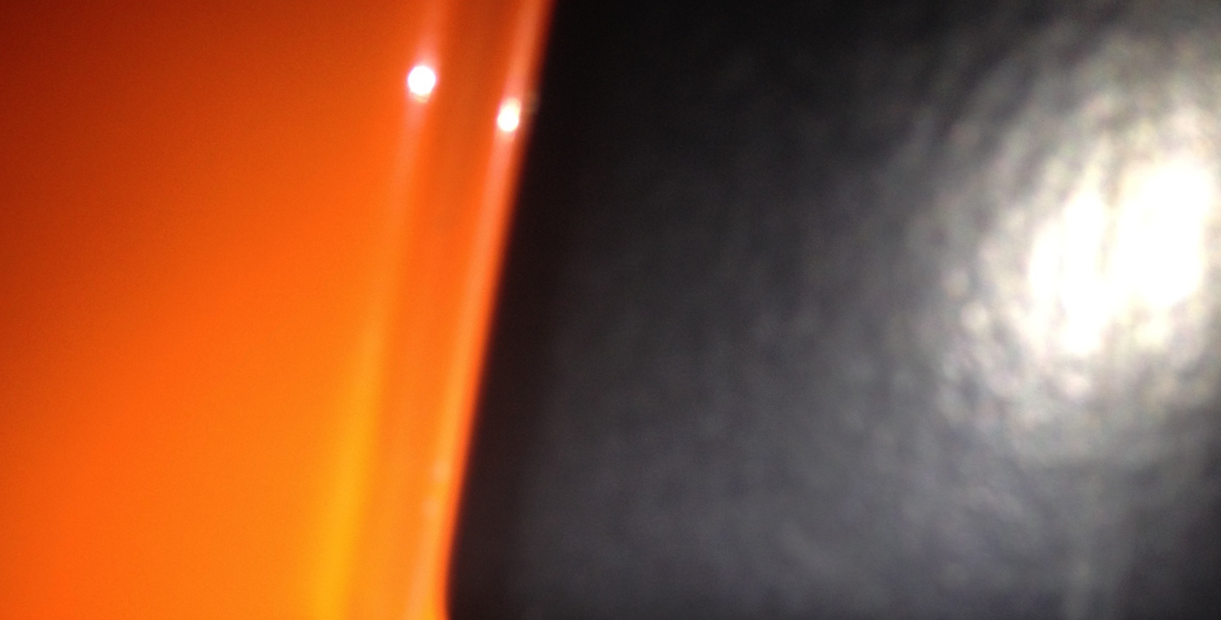 cars in the garage, flash kept going off up close which kind of exaggerates things. by accident i took a freakish shot that captured orange peel on the black bumpers themselves. there is one shot without the flash going off from further back. gives a more natural view of the varying texture gloss levels. forced to describe it all i'd go so far as to say the bumper paint texture is not significantly different to the rockers and valence. but the lower stuff has a satin, very low gloss paint and the bumpers are a higher gloss paint. and they might be the same paint apart from gloss levels. and i don't think its shutlz. its something else. i've been putting shultz on another car in the wheel wells - not sure you could get shultz to come out that way it is on a 914 but i could be wrong. maybe they had a special gun? i would guess the bumpers and valences etc are painted with a formula that is designed to give a subtle orange peel that is not as exaggerated as shultz, freak bumper shot. front bumper orange peel. you get the car into the right light you can see it all over it. even the phoneix red is pretty orange peel. Attached thumbnail(s) |