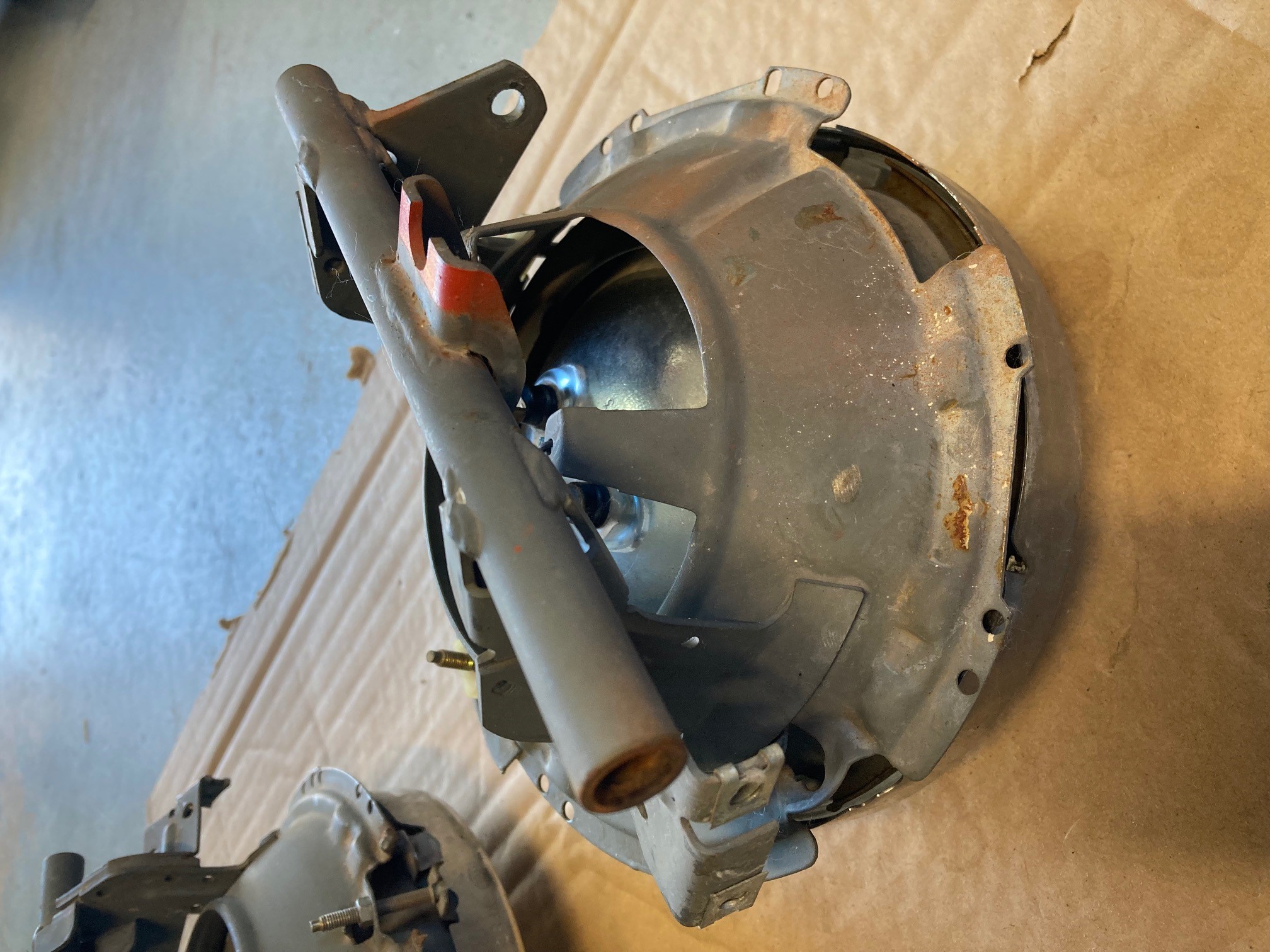 the surrounds were white originally. Both painted with a rattle can. I took my finger nail and some of the paint flaked off... but I don't think it all will. plus one has a tiny crack at the upper mounting hole (pictured) $25 for both sides (pair) + shipping (medium-large box, because they will need a lot of packing materials) SOLD Attached thumbnail(s) |