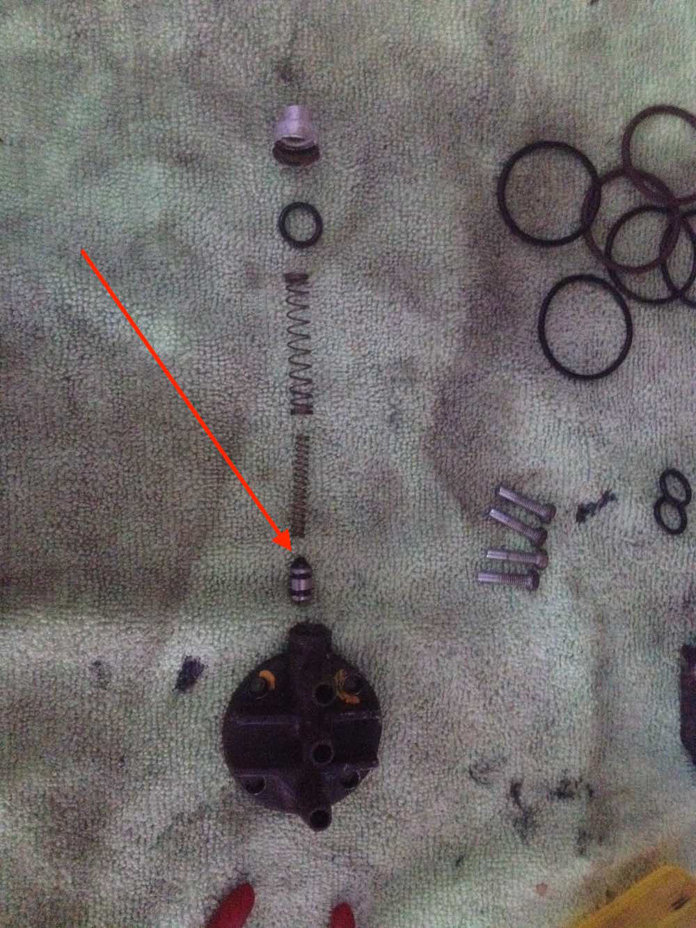 its a tit thing. if thats perished or thrown in the towel after 50 years your pump is farked. won't hold pressure. and where you get one i do not know. if you are lucky just the recess it seals against is gunked. or as i discovered the free operation of the valve sliding is compromised by gunk in the bore it moves back and forth in. one of the pumps i did was very troublesome getting that valve to operate freely again. i ended up wrapping fine grit sand paper around a wooden kebab skewer and giving it a hone. in the photo i have it orientated the wrong way in the spread out layout. for anyone smart enough to work that out. you have to be half mad to rebuild one of these things. but i am getting in practice for the coming dark ages. |