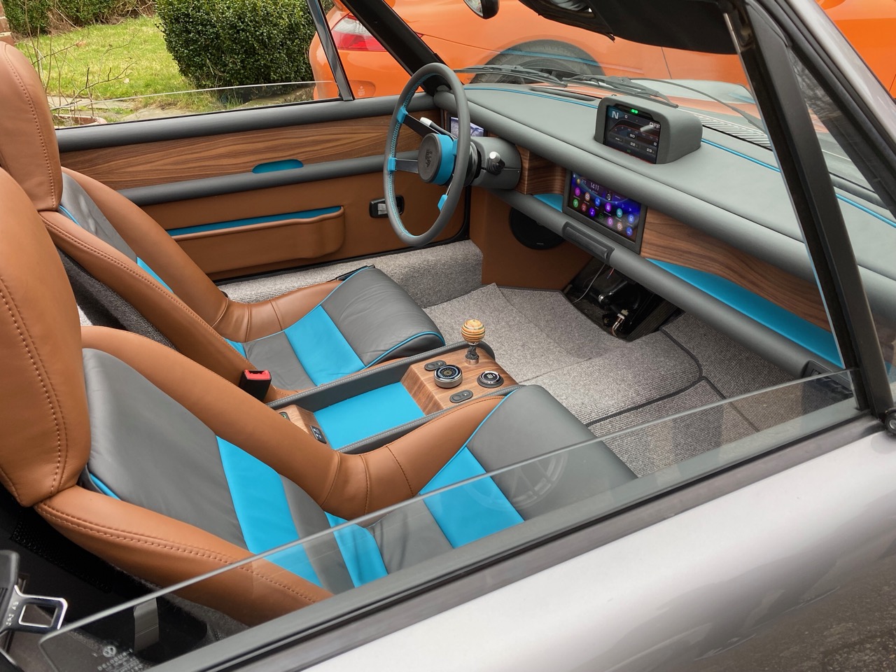 If you watched Vintage Voltage you'd have seen a very different car but this is the vision I had all along despite what the TV might have led you to believe. The interior is scratch built - we even moved the steering column to centre of the driver seat. The car is phenomenal to drive. 1250kg, 50/50 weight, power brakes, power steering and of course 300HP from the get go. All the engineering in the rear cradle and strengthening has paid off - no creaks or rattles, no flex, not a peep from the targa top. I left the show in convoy with the GT3 in the photo. The 914 is just a fast to 80 mph and actually quicker in the twisties. Insane! |