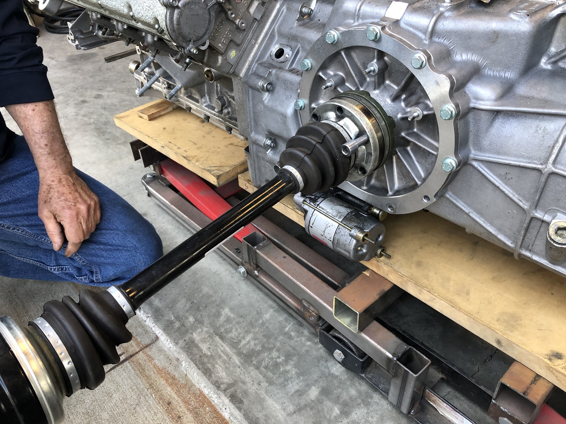 Let's keep with the "it was meant to be" theme. I've been sitting and staring at the drive train because, well, "Ferrari" and noticed the output flanges just begging to have something test fit to them. With my car apart, my axles were handy.