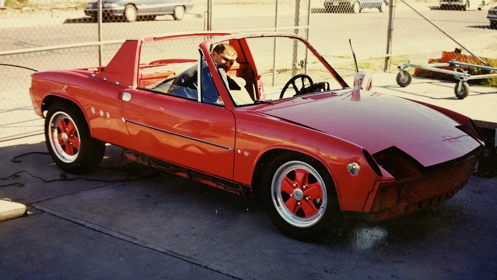 We found a pic of the car from when the previous owner was starting some of the mods/updates. Hard to tell from this but that's the original PTS Raspberry - with matching wheels! (IMG:style_emoticons/default/aktion035.gif) And so no one freaks out: No, it's not a factory /6. So seeing that pic - and being the massive Rush nerd I am - have to add to the name suggestion list: "Red Barchetta" For the guy who works out of the Red Barn... - Tony PS. Is BRCHTTA available from CA DMV? |
