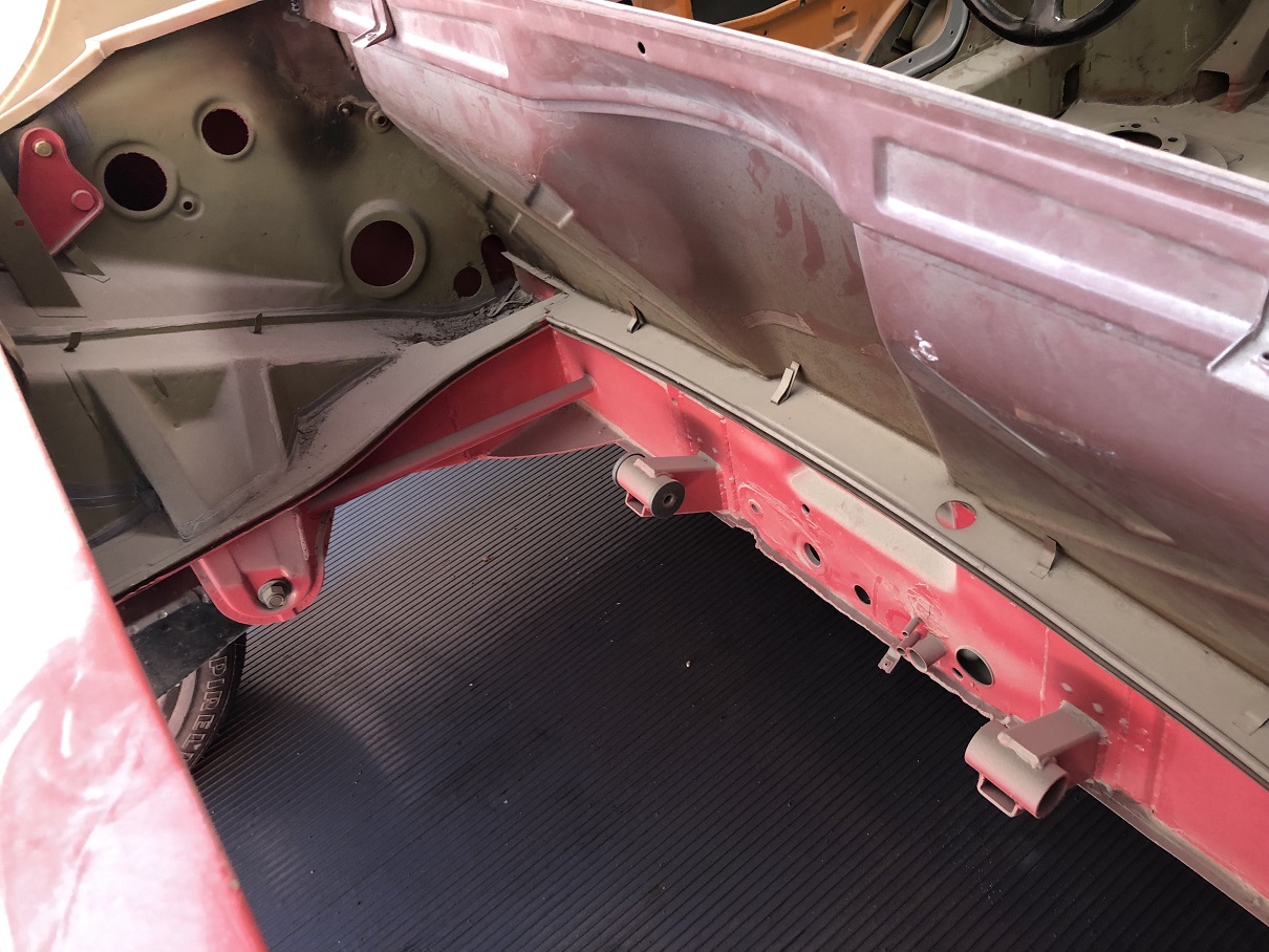 Boy, I'm really unsure of slicing this one up for a swap like this. Take a look at what's already been done - and how nicely. Let's start with the engine bay: - 4-cyls mounts removed - /6 mount installed - oil tank prep complete - prepped for A/C line - suspension consoles reinforced w/bars to the firewall - heater tube delete (some sort of electric heat was planned) Attached thumbnail(s) |