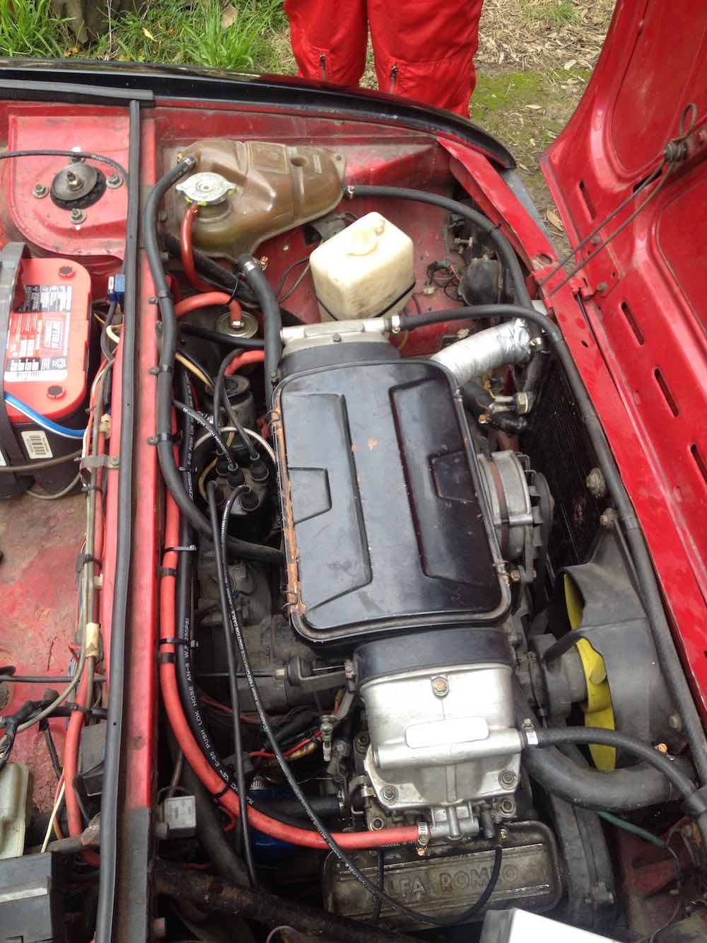 Looks a lot like a Subaru motor ? very similar looking. a very different sound. twin cam per head 4 valve version has around 130 hp. motronic injection. think the one lying around in workshop came out of a late 33 II. there was also a 1.7 two valve version with later version of L jet on it. 110 hp. no carb versions. earlier smaller capacity 1.5 L versions have a nice twin 2 barrel carb set up. a mate of mine had a 33 sportswagen with that engine. good engine - a shite car. bus like steering wheel mounting angle and pedals that were too close. you could never get comfortable to drive it. it cracked in half across the front before it even had a chance to rust out. alfas = one of the few cars that did rust out in aus. we are thinking of jamming it in this and going to lake gairdner. probably the last sud left in aus that didn't rust away or break in half across the front. crazy covid stuff wrecked those plans + this year rain filled the salt lake. might still try and do it. dimensionally the engine would fit in a 914. but then there is all the water cooling stuff you have to do. |
