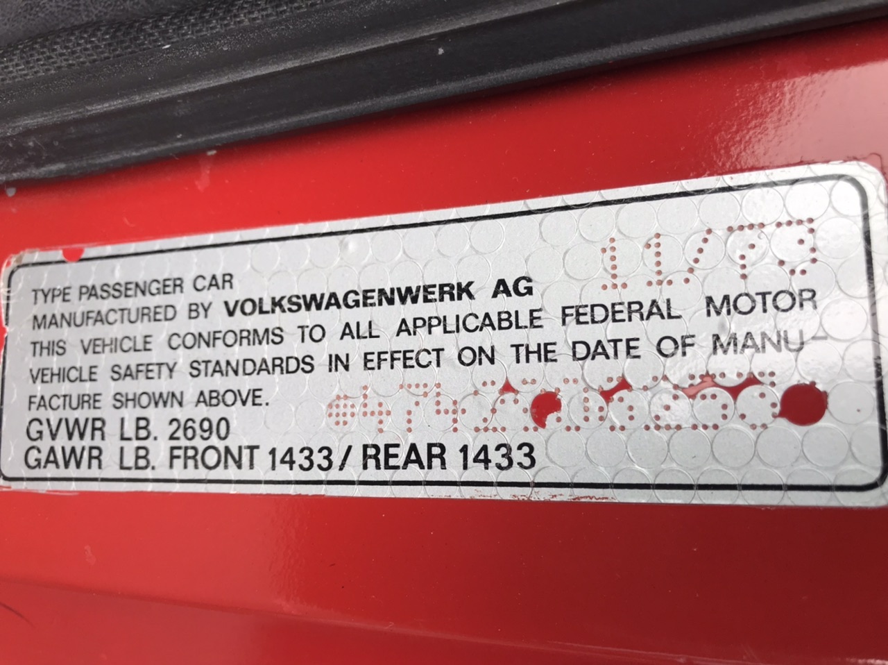 VIN 4742908253; DOT 11/73 K chassis #4619568 (mid Nov 73, Monday) Dual vacuum can and dual TB Only 2 weeks before mine (VIN …2909…; chassis 483… Nov 28) So, this really narrows down just when that changeover from front to back happened. I didn’t think of capturing the engine tin, emissions sticker, or TB number as not a CA car. |
