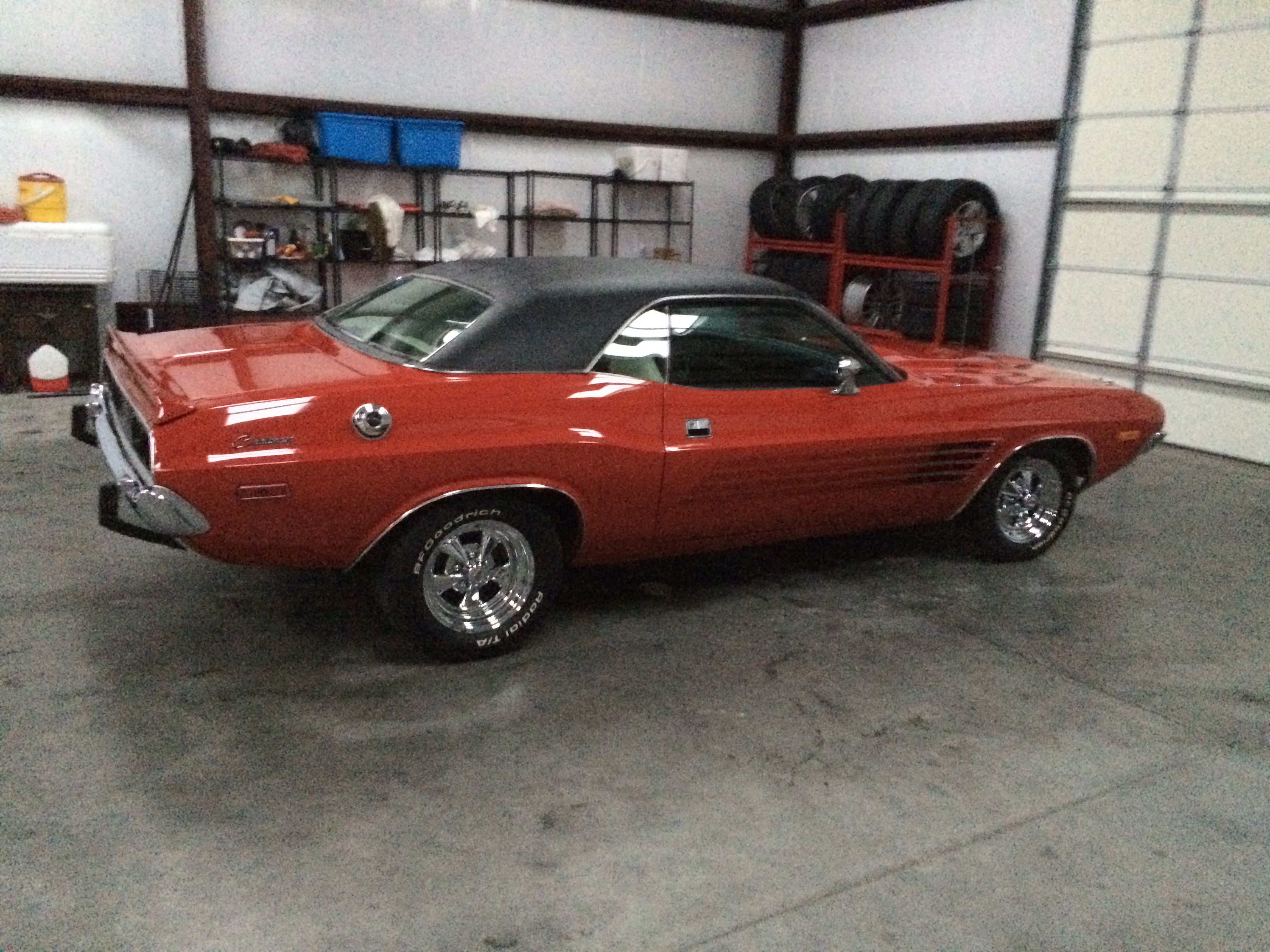 I will send pics when I get back up to my shop in Okla. - but attached a pic of my very first resto - 73 Dodge Challenger Rallye, 340 - Auto, numbers matching, engine/tranny Update Interior is pulled, Engine bay and car is now cleaned up, radio works - pulled the Antenna out of the antenna hole, surface rust being handled, no rust holes yet. Questions