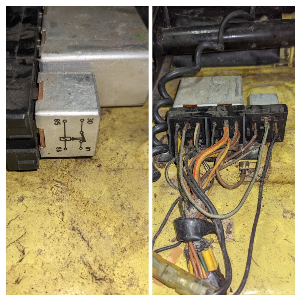Van B posted this photo which shows that for his car there is a short brown wire from relay pin 31 that grounds to a spade under the relay base. Is this true for all years?