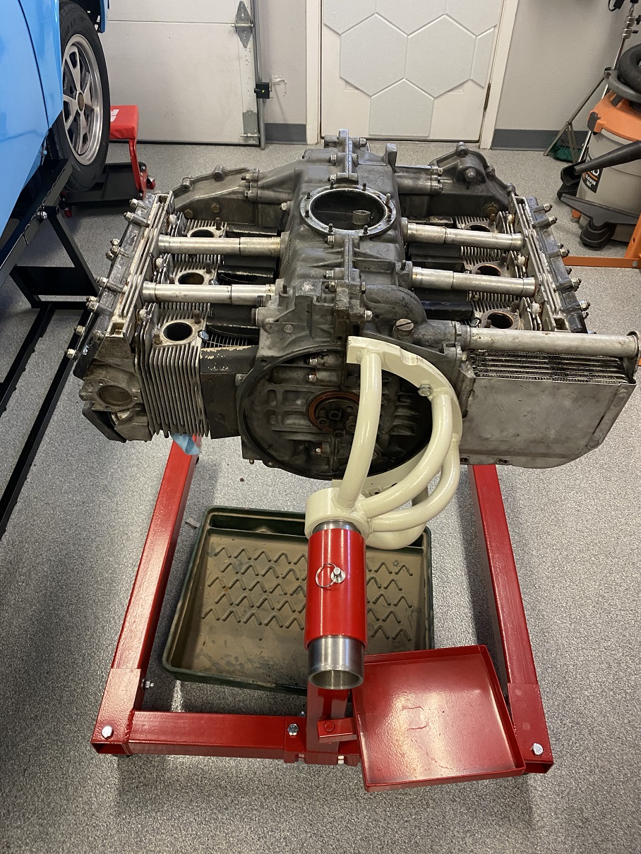 I think the big thing is to align bore, RR piston squirters, hot tank, vapor blast, and do the case savers. Ollies will also do the crank, the heads including bigger bore, clean the cam tower and RR the oil tube, and rebush the rockers. I'll go with a nice set of JE P's and C's probably 9.8:1 compression. MSD ignition, or 123 dizzy. I have a set of Weber 40's I'll probably move over to this engine. But first I have to tear it down. First was dragging it out from under another project and trying unsuccessfully to remove the early heat exchanger rear cross over pipe. My yoke wouldn't fit on the engine due to the relief not lining up with the crossover pipe flange on the rear of the motor. Swine 'discount off brand yoke' After an hour of twisting off a few bolts I said "f' it" and just sawzalled through the right side heat exchanger and the crossover pipe. These original heat exchangers were rusty and had holes in the bottom. Typically, because of the size and weight, It doesn't make sense to sell them as they are only worth about $100 bucks and way more hassle to pack and ship. Once I got the Yoke mounted, I rallied my neighbors to help me lift it onto the engine stand. Luckily the nuts holding the exhaust onto the motor were put on recently and came off with little persuasion. Next up, full tear down and inspection. Attached thumbnail(s) |