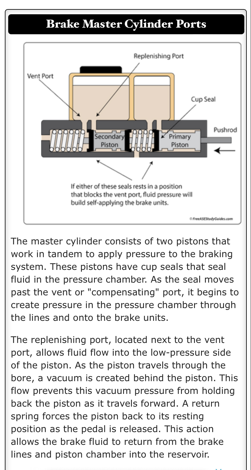 It's like they slowly apply until they completely lock like an E-brake. After sitting about an hour they release. Am totally stumped. Pedal misadjusted and/or blocked compensation port is likely cause when brakes begin dragging after heating up and will not release until they have cooled. @jlance67 You should have a pressure regulator for the rear brakes - has nothing to do with the brakes dragging but has everything to do with safety. I won’t go into the details - it has been covered extensively in other threads. It was put there to avoid rear brake bias which is dangerous. |