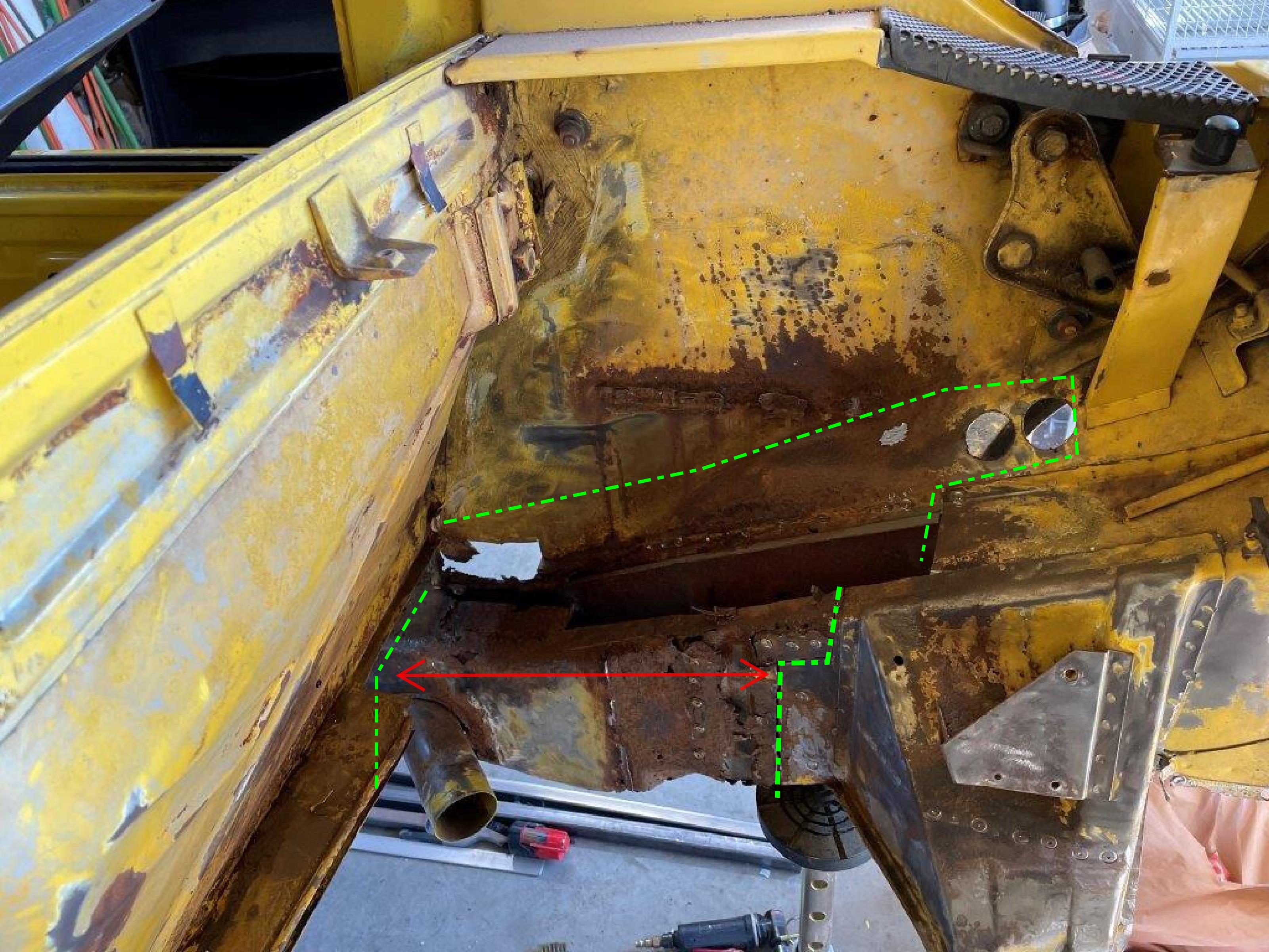 Also, deleted the entire lower fire wall. Thought it to be easier just to remove the lower section and weld in new. ![]() Looking down. ![]() Outside jack post. Not too bad. Passenger side. Trying not to remove the suspension console, most of the metal looks good behind too. Going to remove everything between the green lines of the inner and outer. Going to add a lower door brace as the car started to sag a bit once we started cutting out metal. Looks like it moved about a 1/16". My son said he heard a few cracks once he cut through the inner long. We do have it braced at the doors...just wondering if it will pull in once we start welding. I would prefer to get the measurements back into spec prior to welding though. Looking at getting it onto a rotisserie, the RD version. Looks like I can fabricate one for about $300 and will make it a lot easier to get to the hard to reach locations. But will a rotisserie really help with bracing at the longs when doing this work???? |