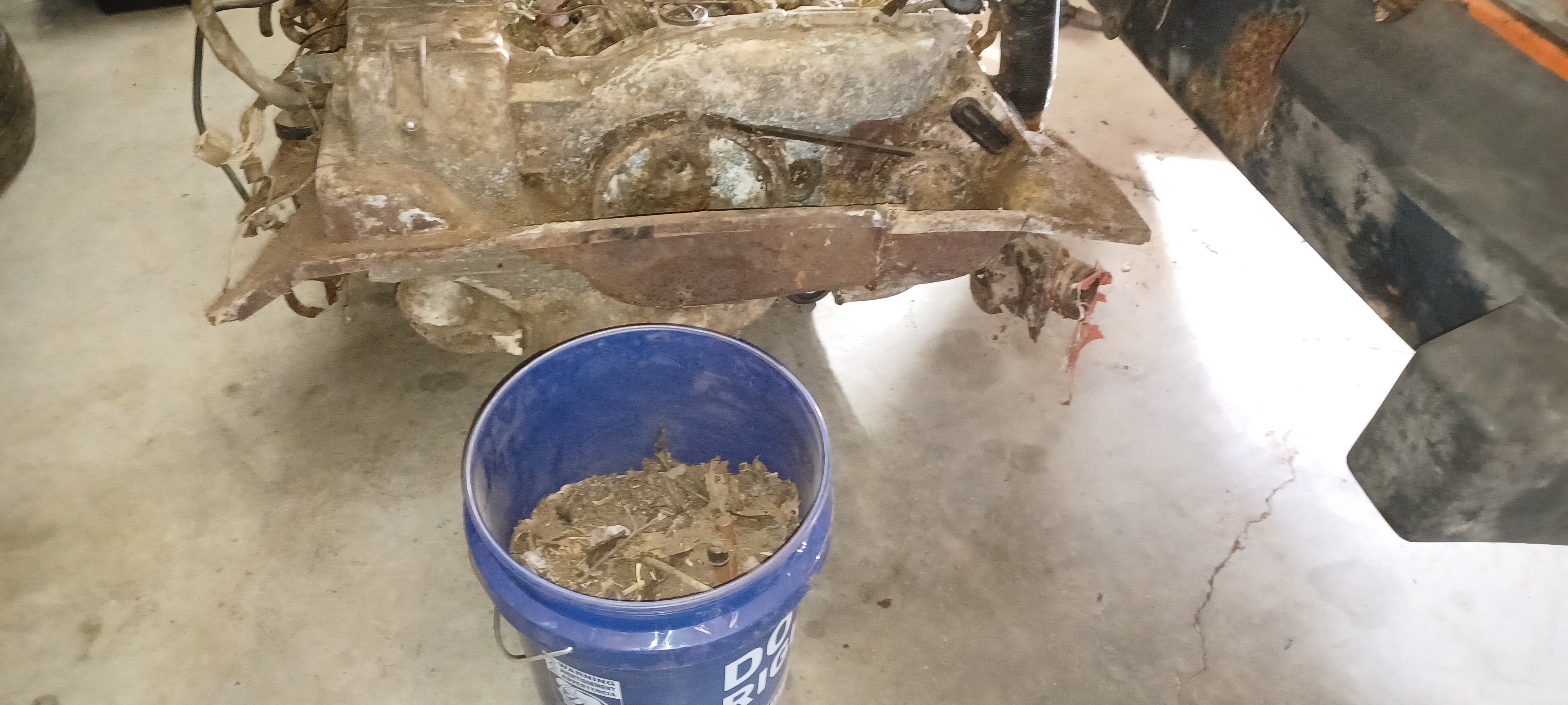 What does it have engine wise? Original FI? Engine is a 1.8, has original FI. Someone local has dibs on the engine and FI, although after "unearthing" the engine (almost a 5 gal bucket of critter stuff, root balls, etc.) there isn't a whole lot salvageable, at least on the top side (IMG:style_emoticons/default/sad.gif) Part of the alloy fan housing literally dissolved. The fan housing is magnesium. Mag can dissolve quickly in the right conditions. |