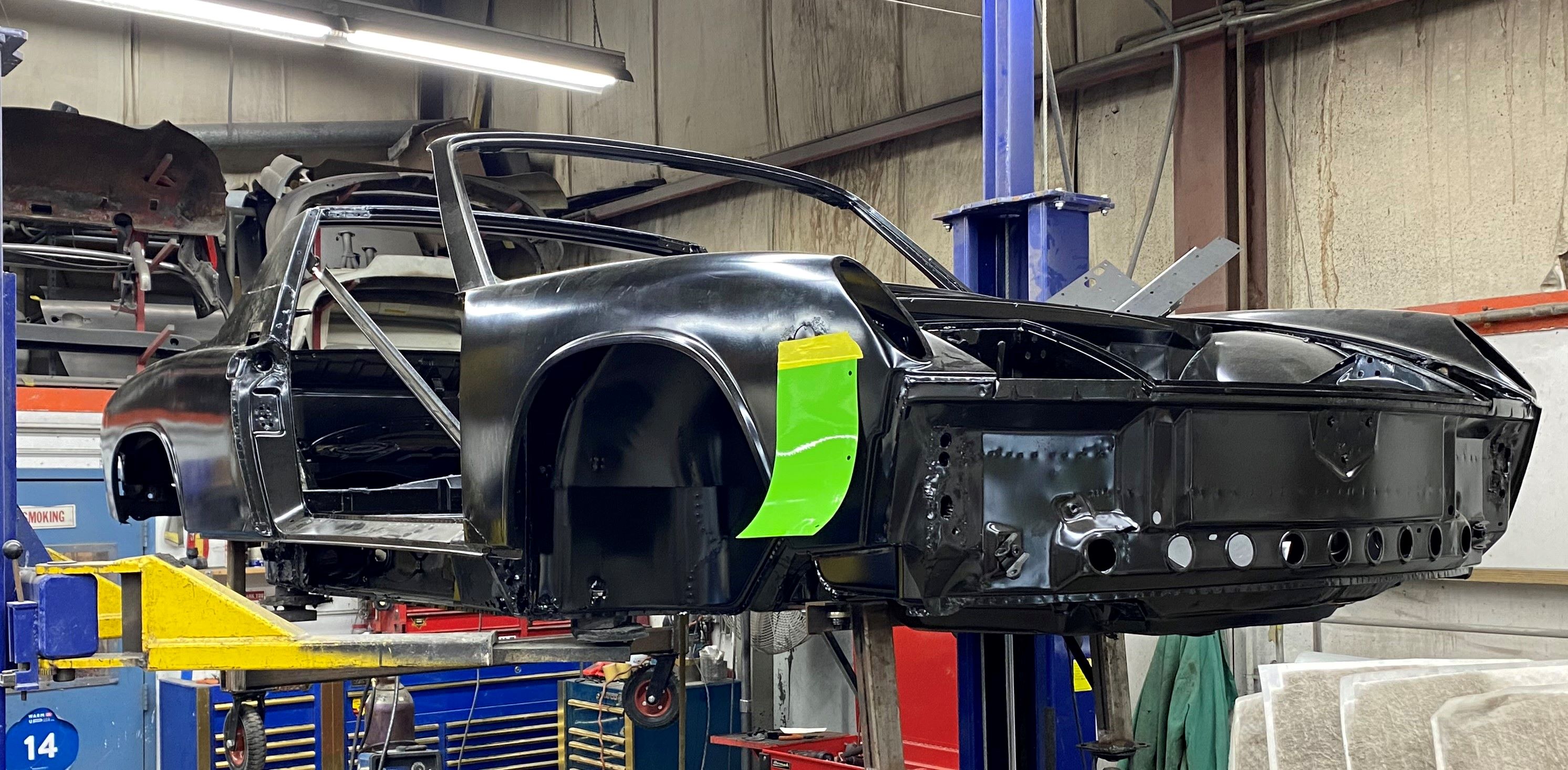 Update - The car was delivered to Auto Associates last week along with the chassis stiffening kits and bulkhead motor mount from Mad Dog. First up will be rust repair. This will be followed the GT chassis stiffening and GT mods with the exception of body panels and flares. The plan is for the car to come back to me for mechanical and electrical reassembly before installation of the doors and flares and final paint. Ken (co-owner and Body Shop Manager) would prefer to have wheels and tires mounted to properly install the flares. He also prefers to have the chassis weighted with gearbox and engine to set the door gaps.