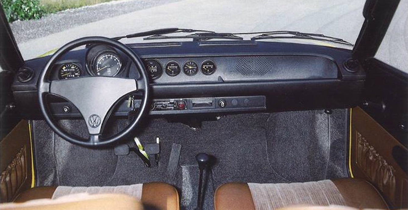 sure to implode any moment. camera vision a bit fuzzy. (IMG:style_emoticons/default/biggrin.gif) but here is piech's proto GTI, his hot hatch version of the dynamited EA266. i think these were hand built in 1971. and it looks like they were already toying with the BMW "lux" mottled carpet. but its low res from deep down. the other one that VW has in its museum has your typical VW black/grey fuzz carpet. VW were getting ambitious? going from econoboxes to giving BMW and lower spec mercs a bit of a run for their money? (as an aside i bet this piech proto GTI would have given everyone a run for their money, 110hp - equal to a 914/6 - in a hot hatch, the guy was evil and i believe this version of the aborted EA 266 is what spawned the later golf GTI, anyway its still in porsches factory collection hidden in a dark corner). |