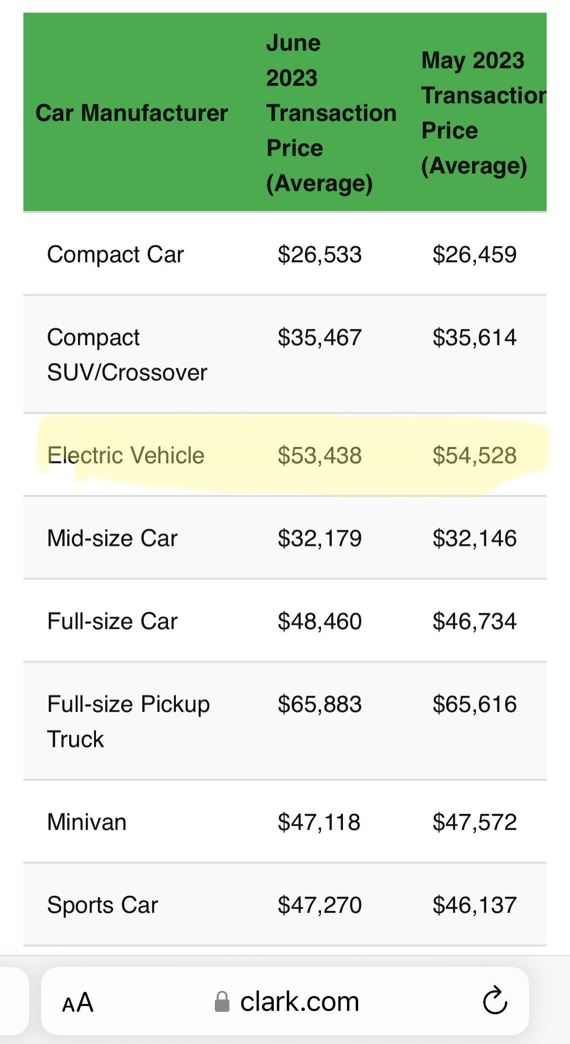 There are now EVs for sale across a wide band of price points, including many below the median new car price in the US. Average transaction price March 2023. $48,008 Average EV transaction price $53,483 March 2023 No idea what point you're trying to make here... "many [EVs] below the median new car price in the US"