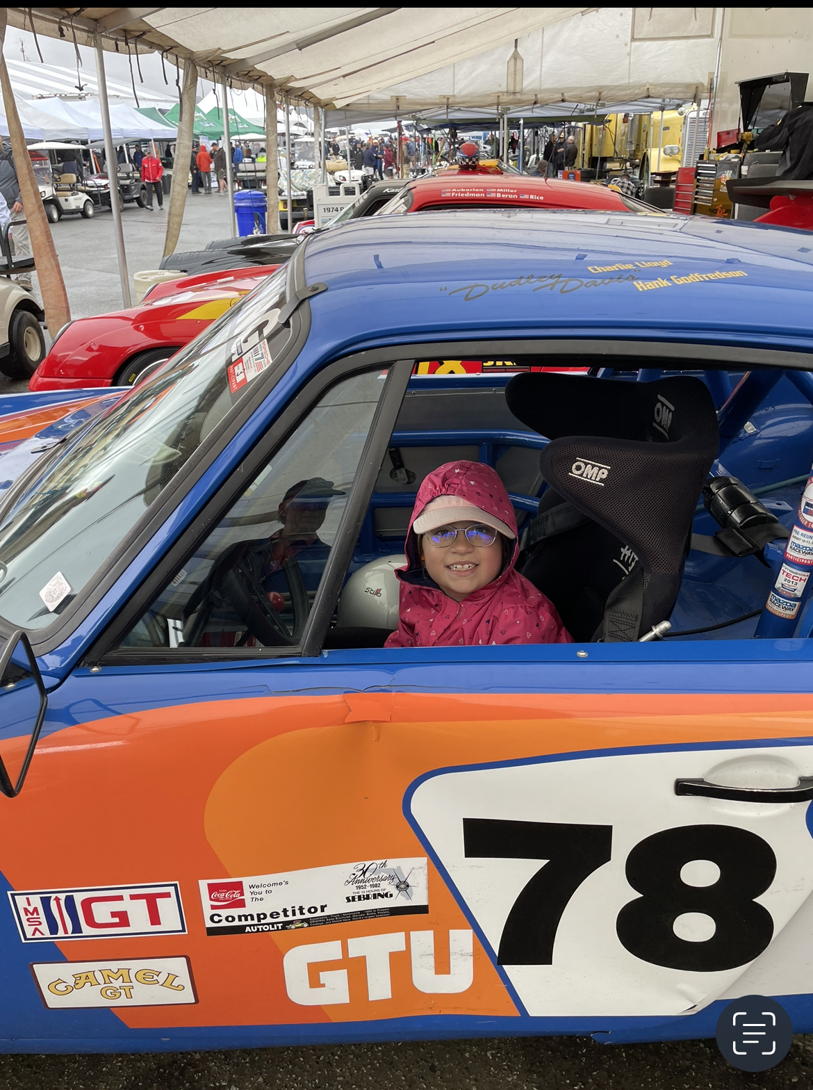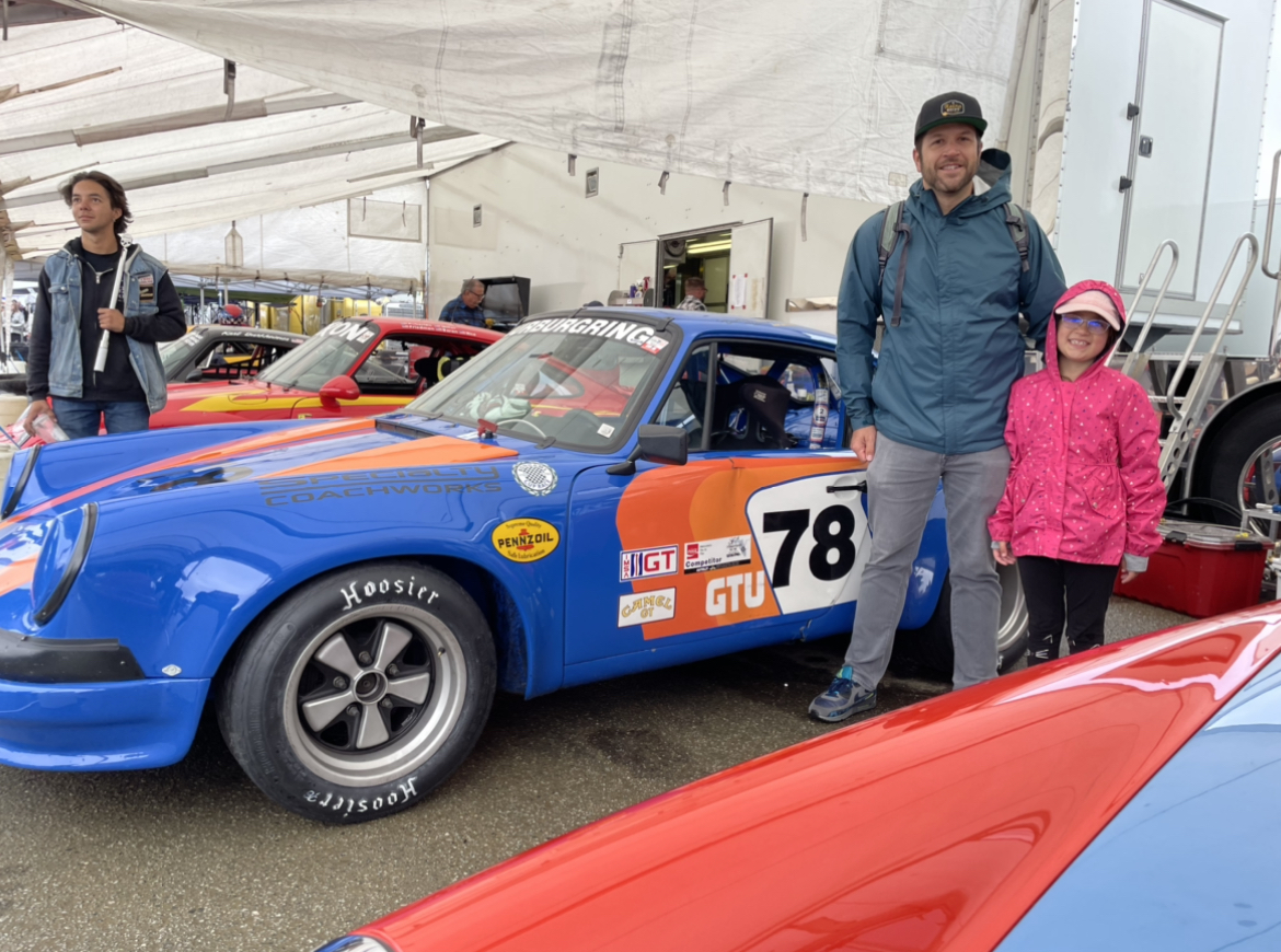 Upon further inspection, the lines did indeed look old, but upon removal and dissecting them I didn't see any shrinkage (and it was pretty cold in the garage). Oh well, a new set of flex lines won't hurt and will last me until the next time I forget whether I've replaced them or not. I also replaced one of the hard lines as it didn't cooperate during the job. I don't have any pictures of the brake line job, but I do have pictures of my next distraction...a trip to Rennsport Reunion VII with my 9-year-old daughter. The blue car was actually a project car my dad owned many years ago that never got completed when he was around. We ended up selling it maybe 15 years ago and it was subsequently restored to the livery it ran at the Sebring 12 hours in the early eighties. I hadn't seen it since it was restored and it was fun catching up with the current owner. The car was built by group of local MN privateers, back when a few guys could build a car and bring it to the big show. There were also a few other nice cars there....but ya'll have seen plenty of Rennsport pictures already I'm sure. |