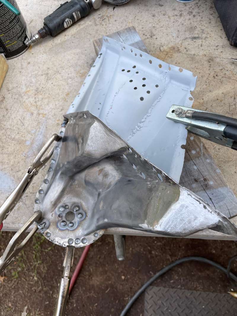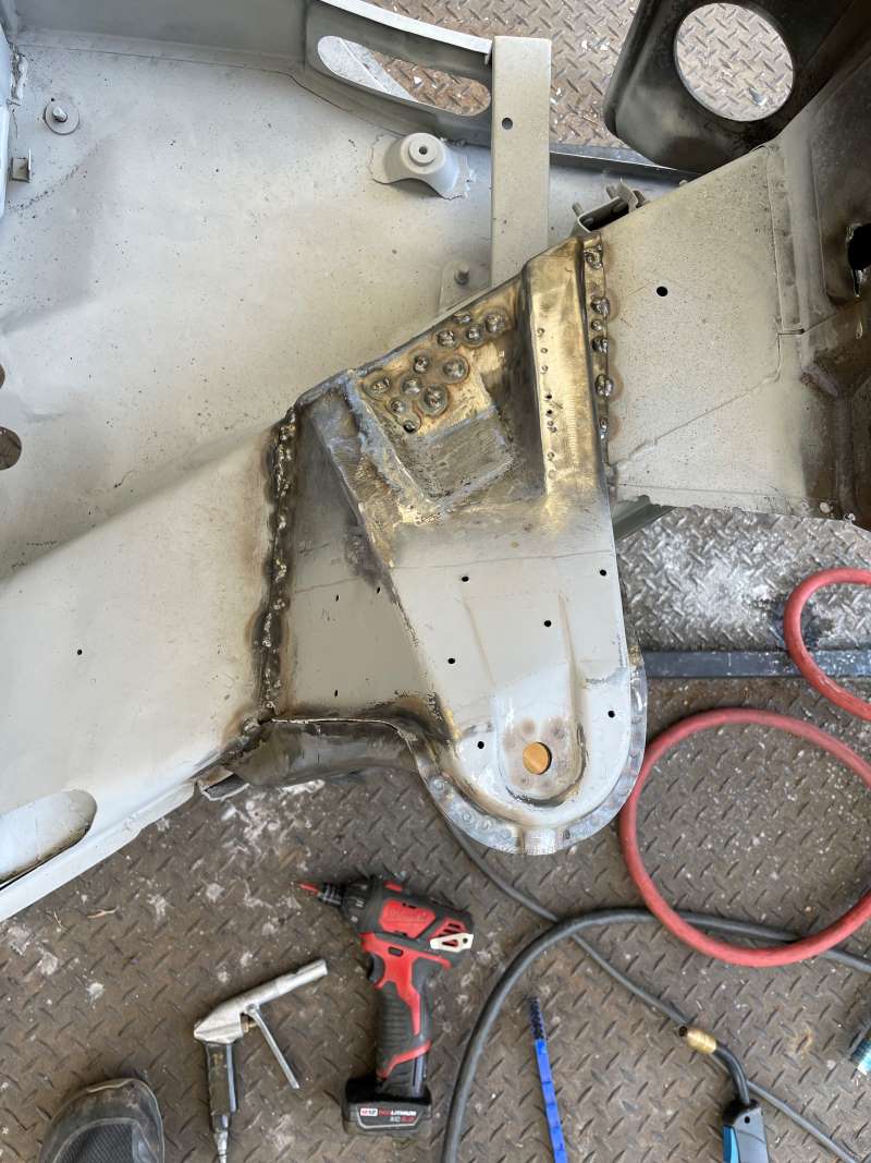 Passenger Inner Suspension Console Replacement - Part 3 (11/2023): With the metal repairs completed, it's time to assemble the replacement console and get it installed on the car. The following photos show this process. Note: see how I forgot to properly drill out my spot weld holes. While not the end of the world, and I have a pretty good hole for each weld, it still bothers me that I didn't even notice it. Too much focus, I guess. I will show the use of my spot weld tool that I employed to help strengthen this seam later in a separate post.