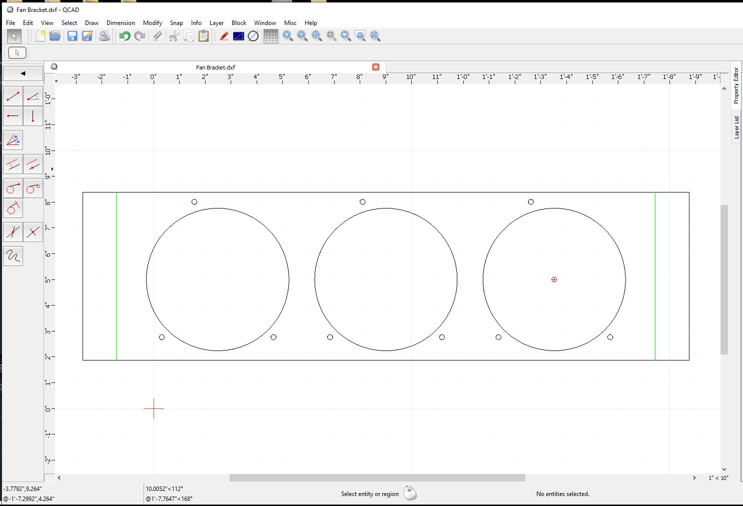 Here's the start of the fan mount. The green lines indicate the edges of the cooler core, the outer shape is the cooler body. This just gets me started on the fan positions. Now I need to work out how I want to mount this to the cooler. I think it'll be sections that'll fold over and serve as the attachment points. Attached thumbnail(s) |