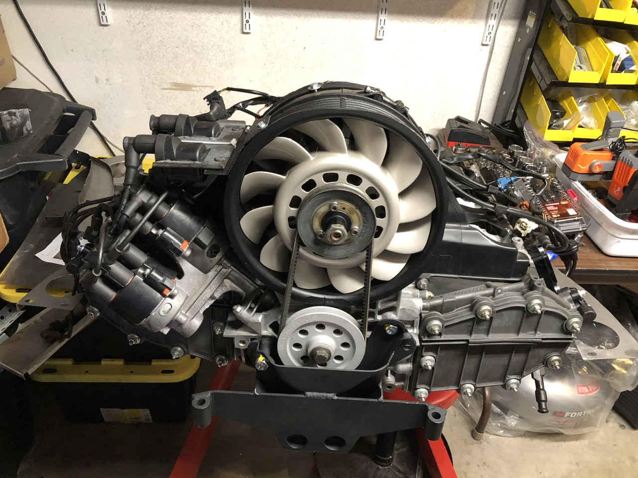 Slowly but surely. Wired up Alternator and mounted fan, housing, etc. Also connected up the spark plugs and coils with PMS mount. Next steps fuel injection and wiring harness. So dumb.. I should have labeled all of the plugs, but I did take lots of pictures and I have the factory manuals and parts diagrams.
