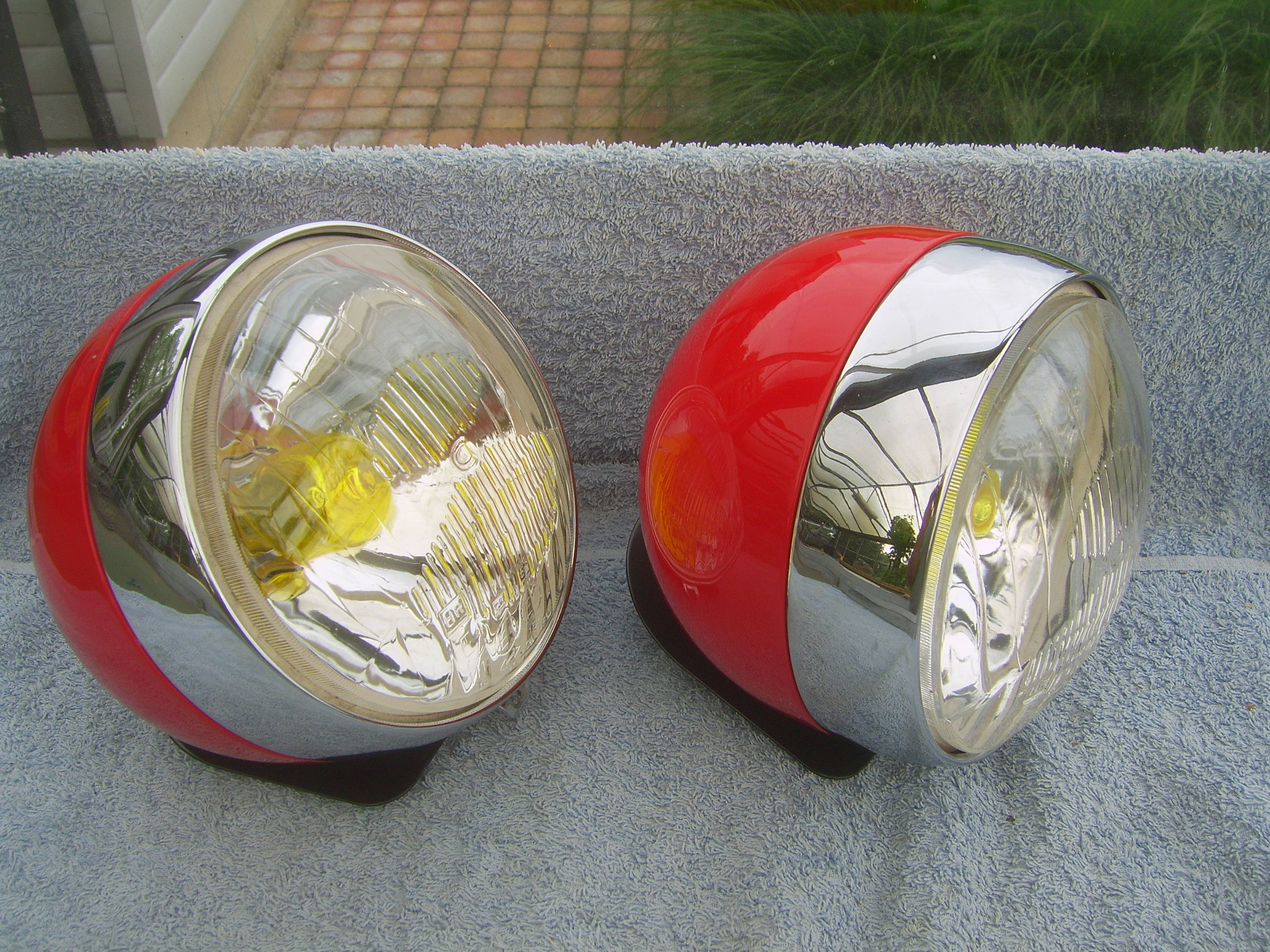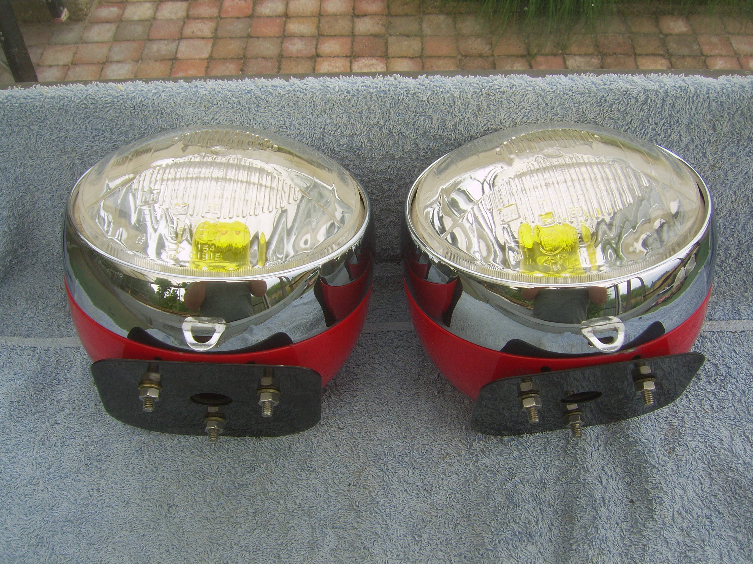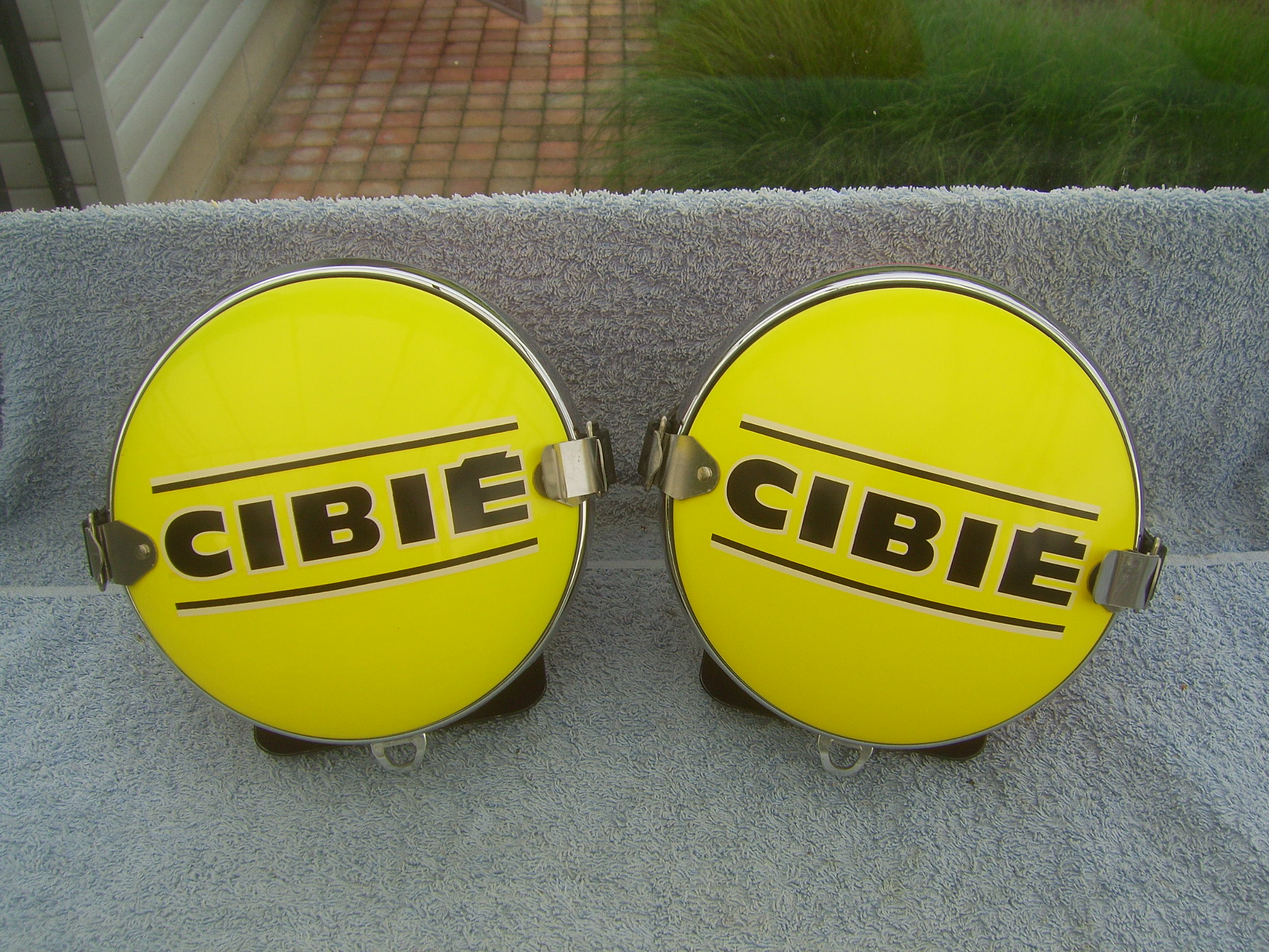 FS: Set Cibie hood lights with yellow bulb covers and set metal Cibie covers, complete with 12 Volt bulbs and mountingplates. Price 675 euro + shipping.