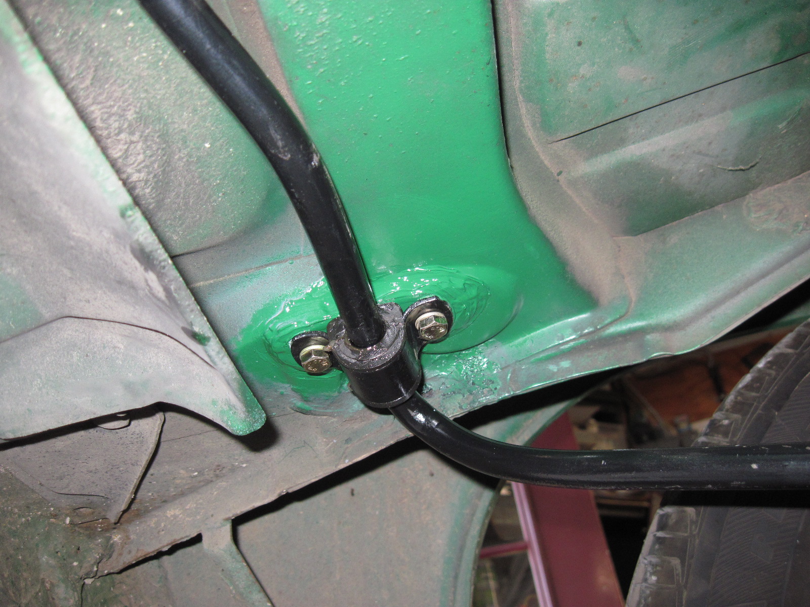 the green car is a 75 with the mounted sway bar bracket The late cars had more reinforcement with the federal bumpers All 73-74 914's with the sway bar option had the reinforcement plates welded in Brad Attached thumbnail(s) |