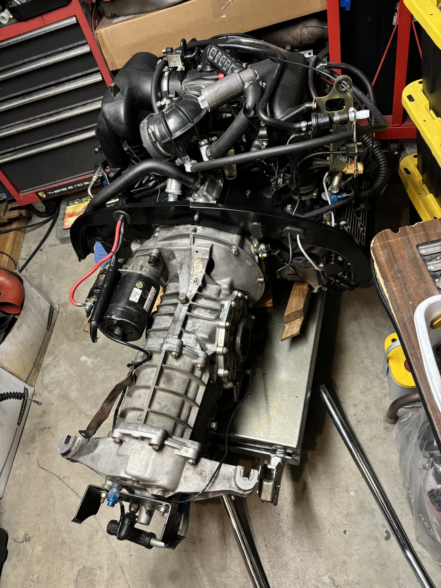 This will not be an RS spec motor. RS Spec is 3.8 liters, bigger valves, different injection, etc. My motor is just a 1995 993 motor with one size bigger valves, RS cams and steve wong chip. I asked PMS about the 3.8 slip ins and they said their is very little noticeable difference between the two and not worth it unless your changing the P&C's anyway. LA Dismantler lessons learned: -Get a warranty in writing -Do a leak down at their location before buying the motor. I did neither and they came up with a ton of excuses not to help me. This is also true for any wrecking yard. My Euro 3.2 also came from a wrecking yard with no warranty, but that motor was flawless. This will probably be a very slow progress thread. I still work full time and have a family. I bought this motor two years ago and finally pulled the 3.2 a couple of weeks ago. I sold the 3.2 to the guy that did the top end overhaul on my 3.6. On the 3.2, two of the cylinders had poor leak down, due to weak rings. The motor ran great before I pulled it and all the spark plugs looked the same. So I was very surprised about the leak down results. Besides spending $4500 to PMS three years ago to reseal this engine, it has never been apart. The PMS reseal was due to the normal oil leaks around the cam chain housings and other areas. Who knows how many miles were on it. The guy who bought it said the rings are weak and to spray WD40 in the cylinders. Sure enough it brought the leak down, from 30% down to 3% on one cylinder and from 10% down to 5% on the other. He plans on doing a top end overhaul on it and flipping it or putting it in one of his 914's. I will add pictures and more info as time goes on. Old Euro 3.2 motor Used 3.6 motor ![]() |