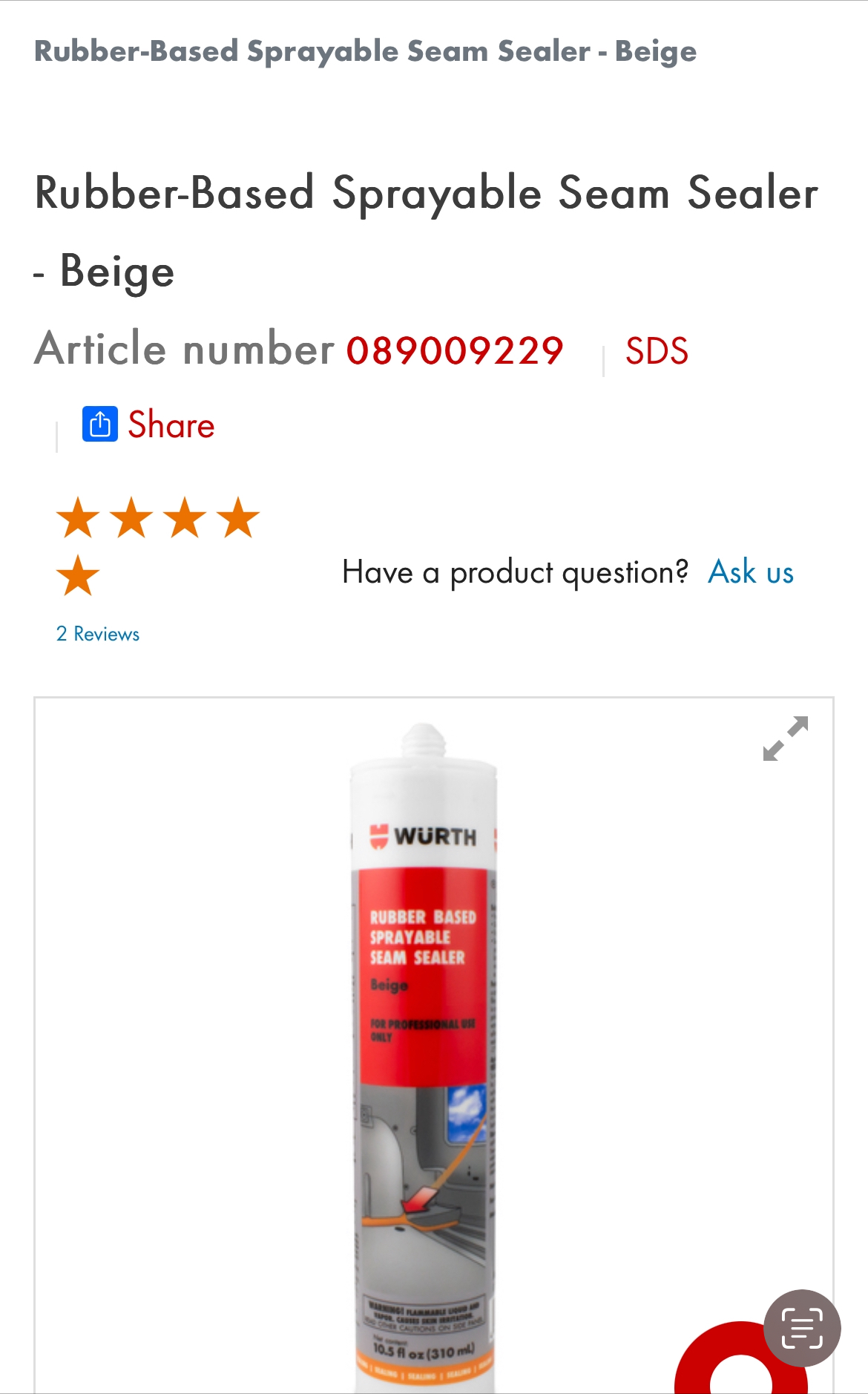 DennisV Here is what the Wurth Brushable Seam Sealer looks... Jan 3 2025, 12:37 PM
