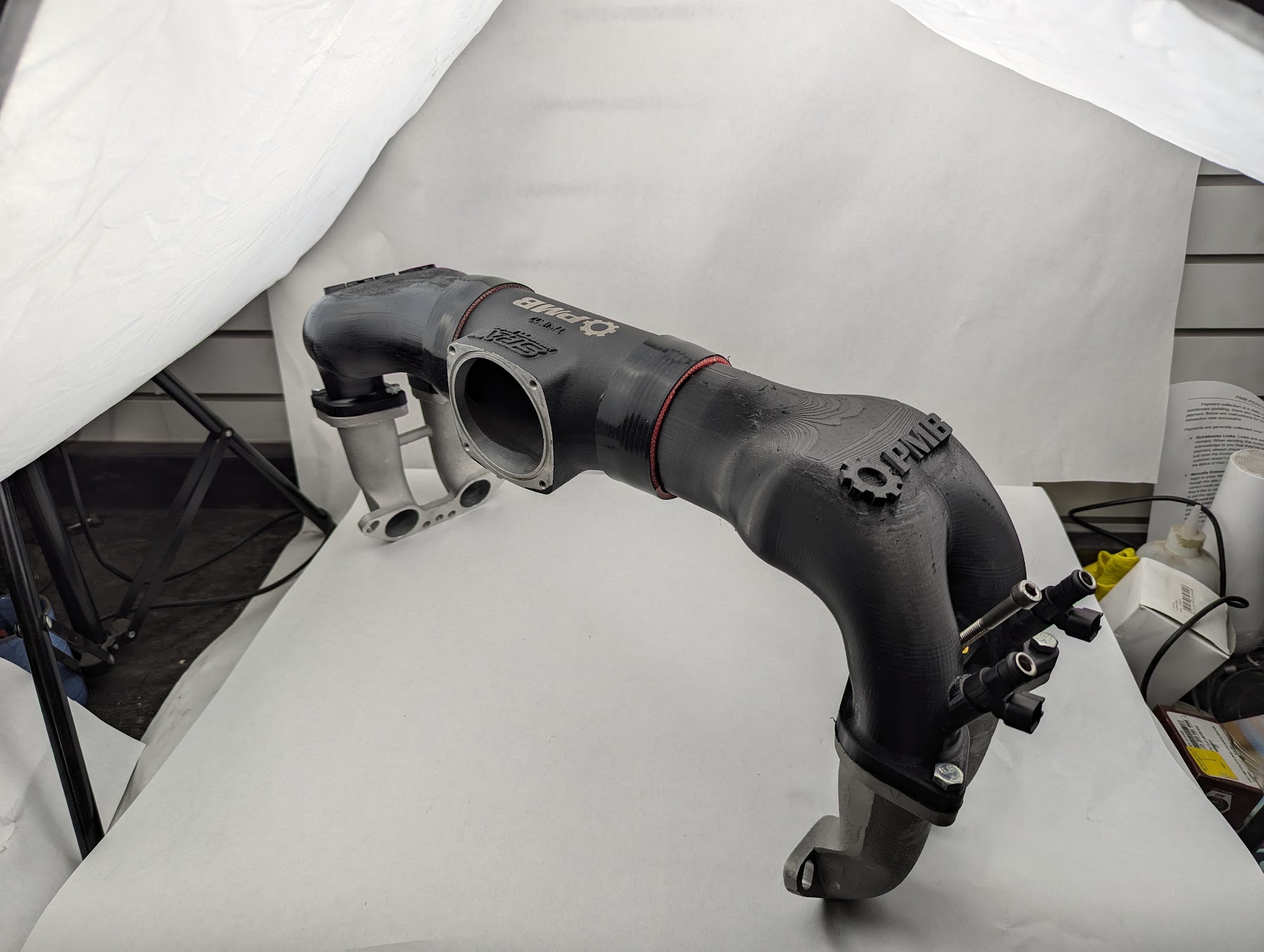 I watched this video from Jake Raby over the weekend. It's always interesting listening to him talk about R&D. It seems that he and Mario from the Dub Shop have been working on their own version of a more modern Single Throttle Body EFI. Hopefully, those interested can access this link: https://www.facebook.com/aircooledtech/vide...925350345685623 They aren't the only ones (IMG:style_emoticons/default/biggrin.gif) Back in the day when Jake still despised Megasquirt he reached out to me and we spoke a bit on the subject. Despite bad experiences he has always been forward thinking enough to realize aftermarket injection was the way forward. Unfortunately at the time my day job prohibited me from being more involved assisting in his path. Glad to see him working with Mario though as he has delivered some awesome products for injecting our engines. Most people that spend any time playing with this stuff though quickly realize the shortcomings of ITBs so I'm really glad to see the two of them jumping on this problem. That said, single plenum intake manifold design is a pretty complicated subject. While I don't actually know what all they have put into the project so far it appears their approach is based on improving a type 1 style injection manifold with a hyper focus on improving flow and while I am sure this will absolutely remove restrictions over the stock type 1 setup efficient plenum design involves more than just maximizing flow. Runner and plenum lengths, volume, shape, and orientation all have impact on the end result. Theory is one thing though and dyno results are another so as someone who has been playing with modern injection on 914s for the last 20 years I couldn't be more excited to see the results. Now back to my original comment... For a while before "officially" starting work for PMB I had been advising Eric on fuel injection matters and the ITB/single plenum problem has been something I have brought up quite often. After throwing a few ideas on the table Eric picked up the ball and got some prototype bits fabbed up. Our approach was a little different in that rather than trying to improve an old design we went with adapting a more modern one. Been put on the back burner for a bit as I have had other work to address, but anyone that attended the last open house may have noticed a a slightly more complete version of this bolted on a motor: |